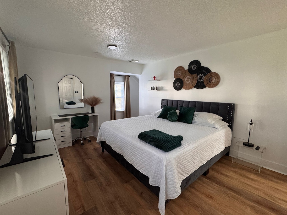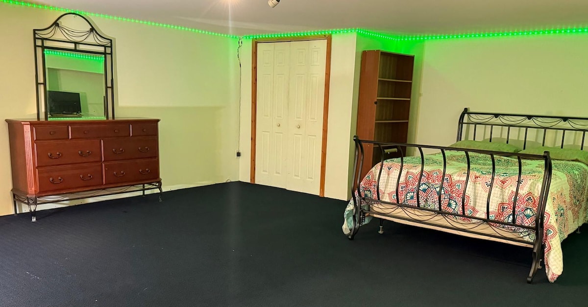 Private 1200 sq. Ft. Suite staycation, located in a beautiful, safe, quiet cul-de-sac neighborhood. Modern Kitchen, One Bathroom, One Luxury Queen Size Bed, 55” Smart TV with YouTube TV/Amazon Prime/Netflix, Apple iPhone charger, 2000mb Wi-Fi, AC, Heat, Refrigerator, Countertop Oven, Microwave, Electric Hot Plate, Keurig Coffee Maker, Hair Dryer, Iron, Ironing Board, Shampoo, Conditioner, Body Wash. The space is nonsmoking or vaping inside and outside the premises. No children or infants
