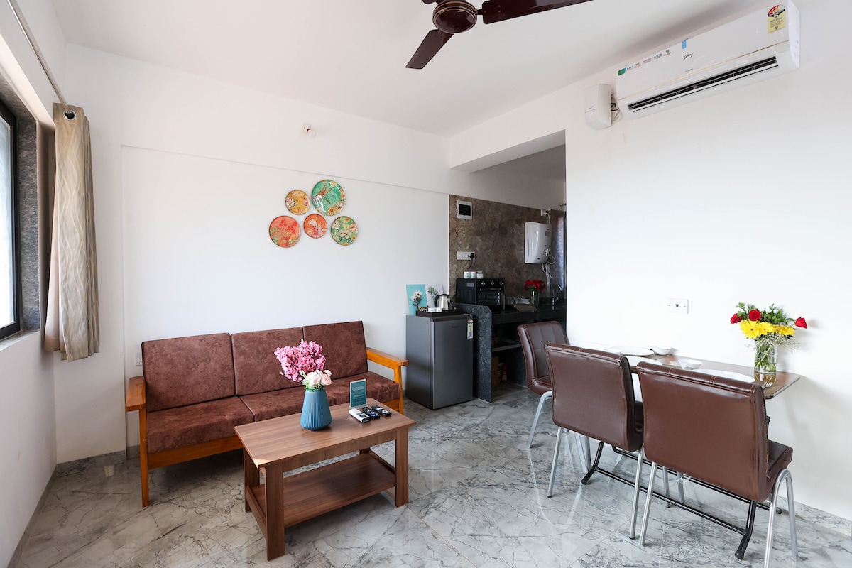A recently renovated homestay, NIRAKI by Seascapes offers accommodation in Harnai. This homestay provides a garden. The homestay features rooms with air conditioning, free private parking, and free Wifi. Each unit features a balcony, a fully equipped kitchenette with a fridge, a dining area, and a flat-screen TV, while the private bathroom includes a shower and free toiletries. Each room is fitted with a kettle, while some have a terrace. At the homestay, each unit is fitted with bed linen and towels.