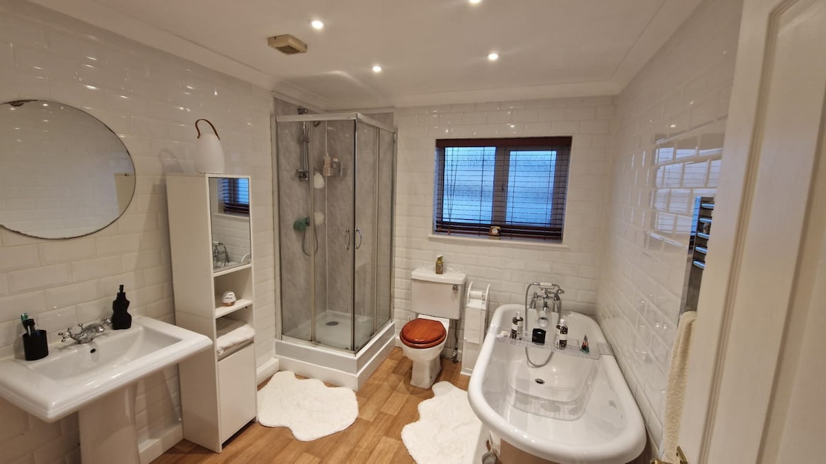 Welcome to our cozy Airbnb room, featuring a comfortable double bed, chest of drawers in cupboards and a selection of books for your enjoyment. You'll have access to 1.5 shared bathrooms and a well-equipped kitchen with a fridge freezer, coffee machine, and tea selection. Linen and towels are provided for your convenience. We look forward to welcoming you for a comfortable and relaxing stay.