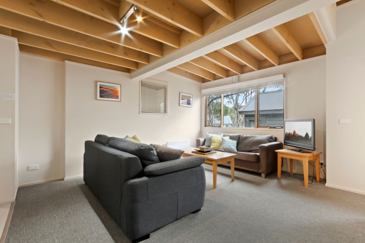 Snow Gums apartment 3 - alpine getaway for 4 guests. This lovely 2 bedroom apartment is centrally located on the ground floor. Perfect for a small family or 2 couples. With the lounge area overlooking a reserve and tennis court and children’s playground as well as having restaurants and cafes only moments away make this a perfect spot. Come and be one of the first to stay in snow Gums 3 since it had an upgrade