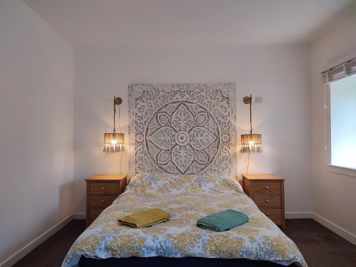 "Coorie-in" to supreme comfort with a Super King size bed (6ft wide by 6ft 6inches long). This can be presented as 2 single beds upon request, at time of booking. The sofa bed is situated in the living room. Dishwasher and washing machine available in the kitchen.
