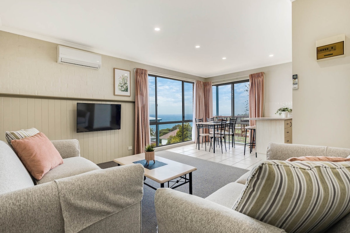 - "Terrific" - "Beautiful views, our verandah had unobstructed views of Twofold Bay. We were able to listen to the waves crashing as we slept. BBQ area also has unobstructed views and is undercover. Laid back and quiet town." - "This was exactly what my family needed. Relaxing quiet holiday with beautiful views. We enjoyed our stay." - "This was a really nice apartment with stunning ocean and coastline views. The seal out in front was very entertaining"
