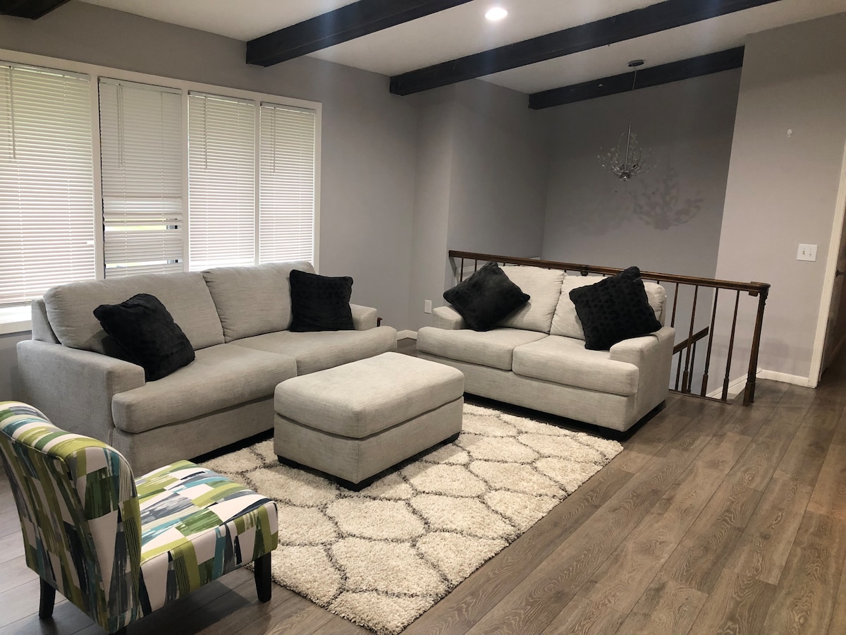 Spacious 5BR home in a quiet MN suburb—perfect for families or groups! Enjoy two cozy living rooms, a fully stocked kitchen, and a game room with foosball. Sleeps 10 comfortably with 2 full baths, laundry area, and garage parking. Great for bonding, relaxing, or extended stays.