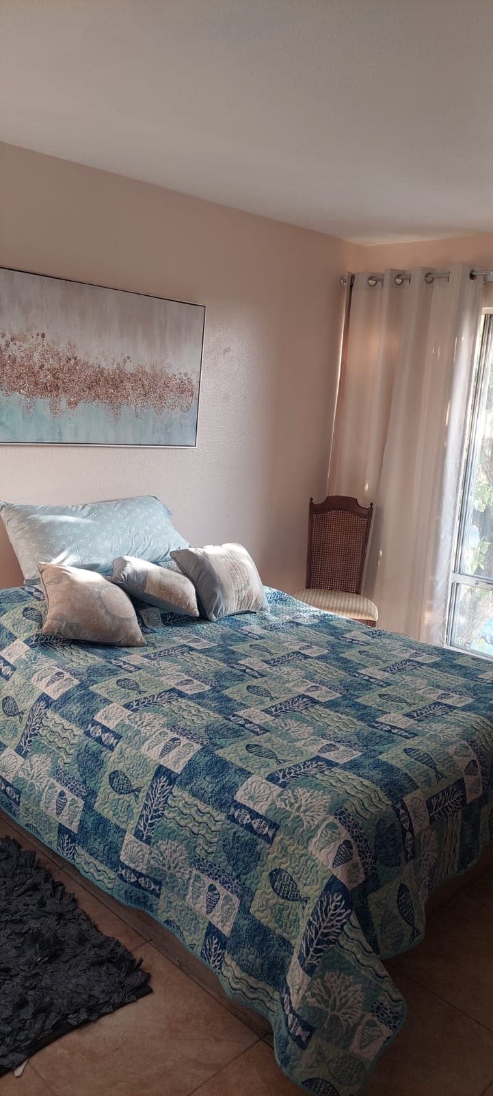 Our home is eclectic in design and decoration. We enjoy a more relaxed atmosphere at home and when we travel. We try to protect the environment as much as possible. While we offer a clean environment, we do not use harsh chemicals, pesticides or herbicides on our property. You might see a few weeds and possibly bugs or lizards in our garden! We have free ranging chickens, as well as a friendly cat.