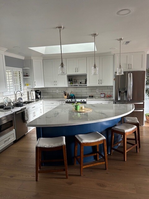 The 600 square-foot residence has been newly painted and features new flooring, a new furniture, large windows throughout, plus a skylight and sliding glass doors letting in the great California sunshine. The space has been tastefully designed with an international flair with mementos and photos from your hosts’ travels from around the world.