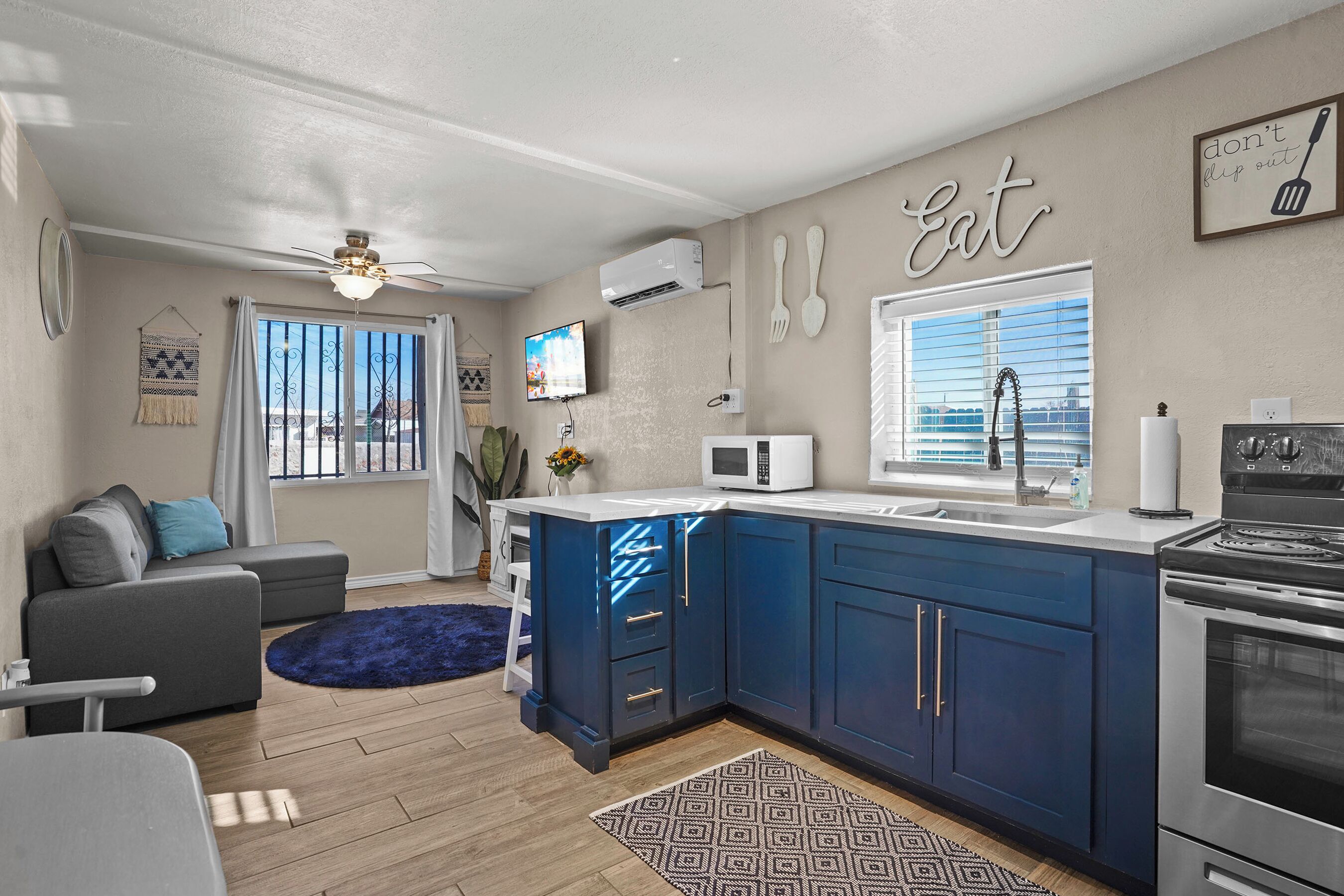 Welcome to our charming and eclectic apartment, conveniently located near downtown El Paso, Texas. Bursting with character and artistic flair, this one-of-a-kind space offers a truly unique and vibrant experience for your stay in the city.