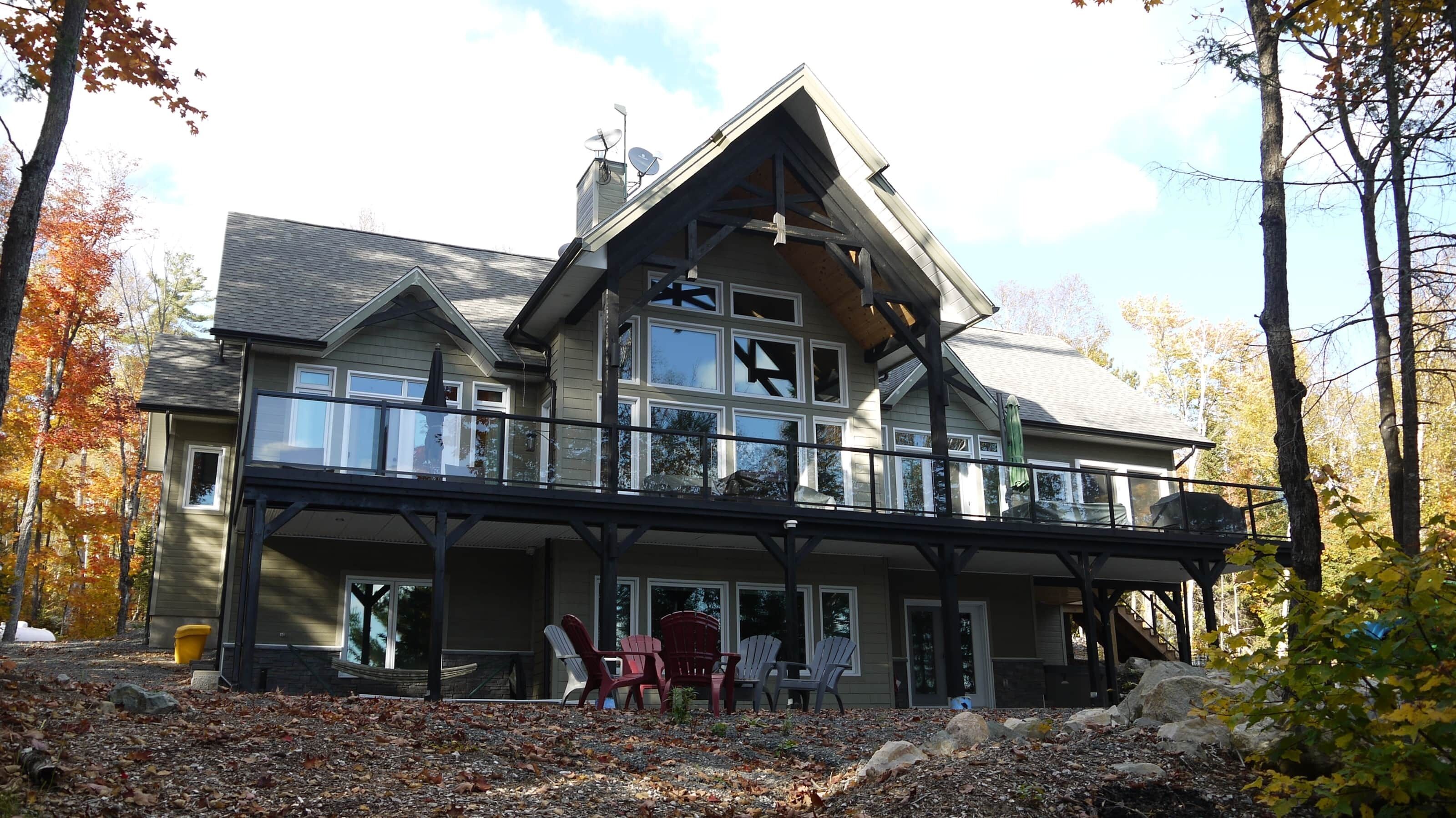 A new all-season 4 bedroom executive waterfront cottage on 4 acres of landwith 450 feet of private shoreline on the shores of a very tranquil and private Popeye Lake, Elliot Lake, Ontario. This spacious home surrounded by nature is perfect: to relax; recharge; spend time with family; cook gourmet meals; experience the Finnish Sauna; spend quality family time; jump in the lake; enjoy the water park; kayak; canoe; curl up by the wood fireplace; write a book; hike; go ATVing; snowshoeing; golf; ski; snowmobile; ice fish and more!. Welcome to a great experience!