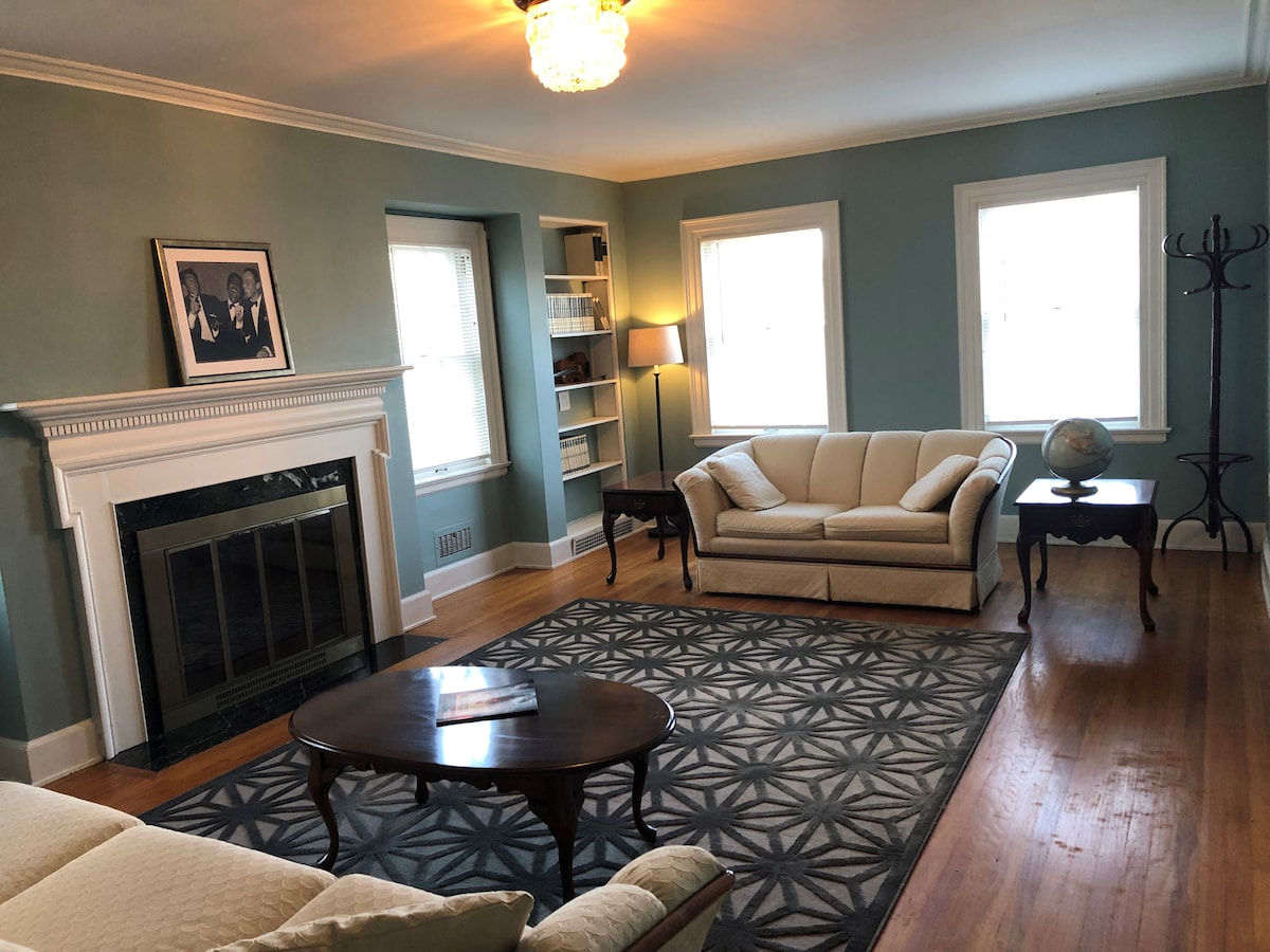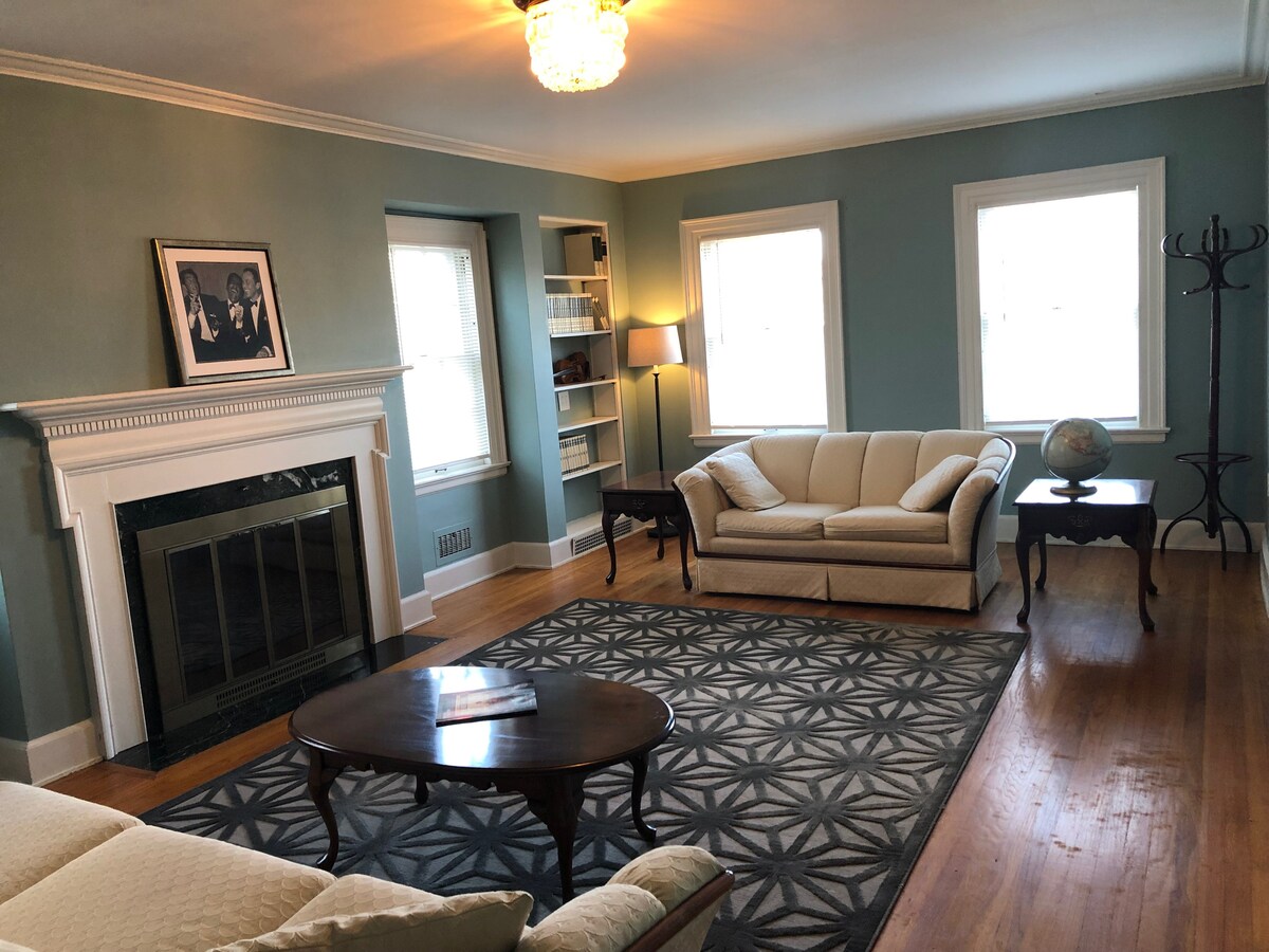 Our building is a very nice turn of the century brick colonial. The shared area of the 1st floor is very spacious with a living room, dining room, kitchen, coffee area, and very nice screened in porch. As you will see in the pictures, we chose to not feature TVs in the common areas in effort to promote privacy and quietness throughout the home. We strive to create a quiet and safe place to retreat home too.