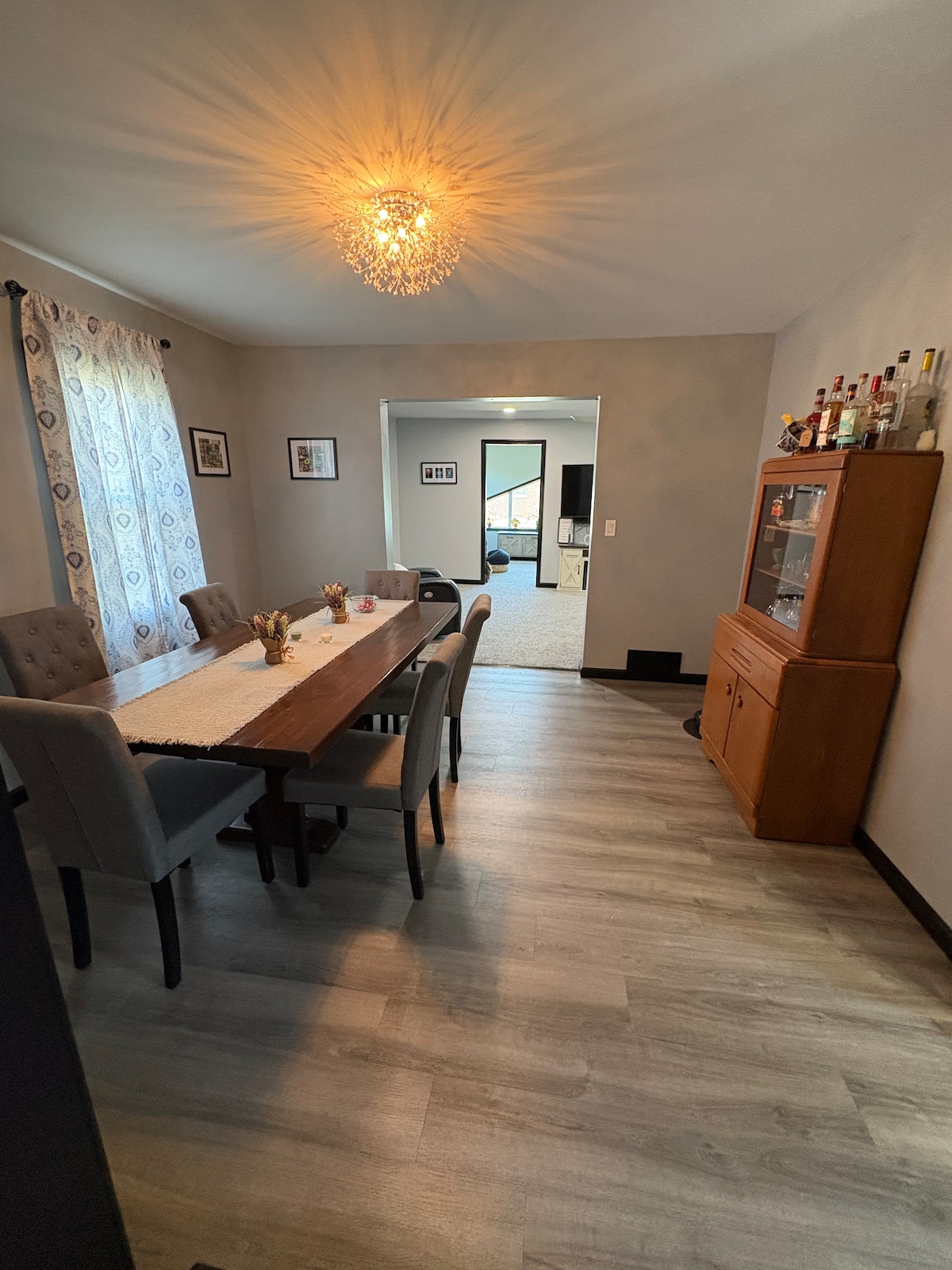 The 1st floor is very spacious with a living room, dining room, and kitchen. As you will see in the pictures, we chose to not feature TVs in the common areas in effort to promote privacy and quietness throughout the home. We strive to create a quiet and safe place to retreat home too.