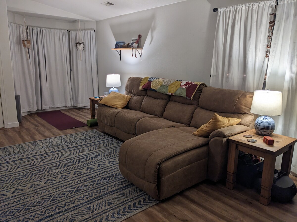 This cozy bedroom offers a relaxing retreat with a queen-size bed, private bathroom, private entrance, patio space, and access to a fenced-in side yard. Enjoy the peaceful atmosphere with shared use of the kitchen, living room, and washer/dryer. Located just 5 minutes from Eureka and 10 minutes from Old Town and local amenities, it’s perfect for both relaxation and convenience. Whether passing through or visiting for work or leisure, this room is the ideal place to rest.