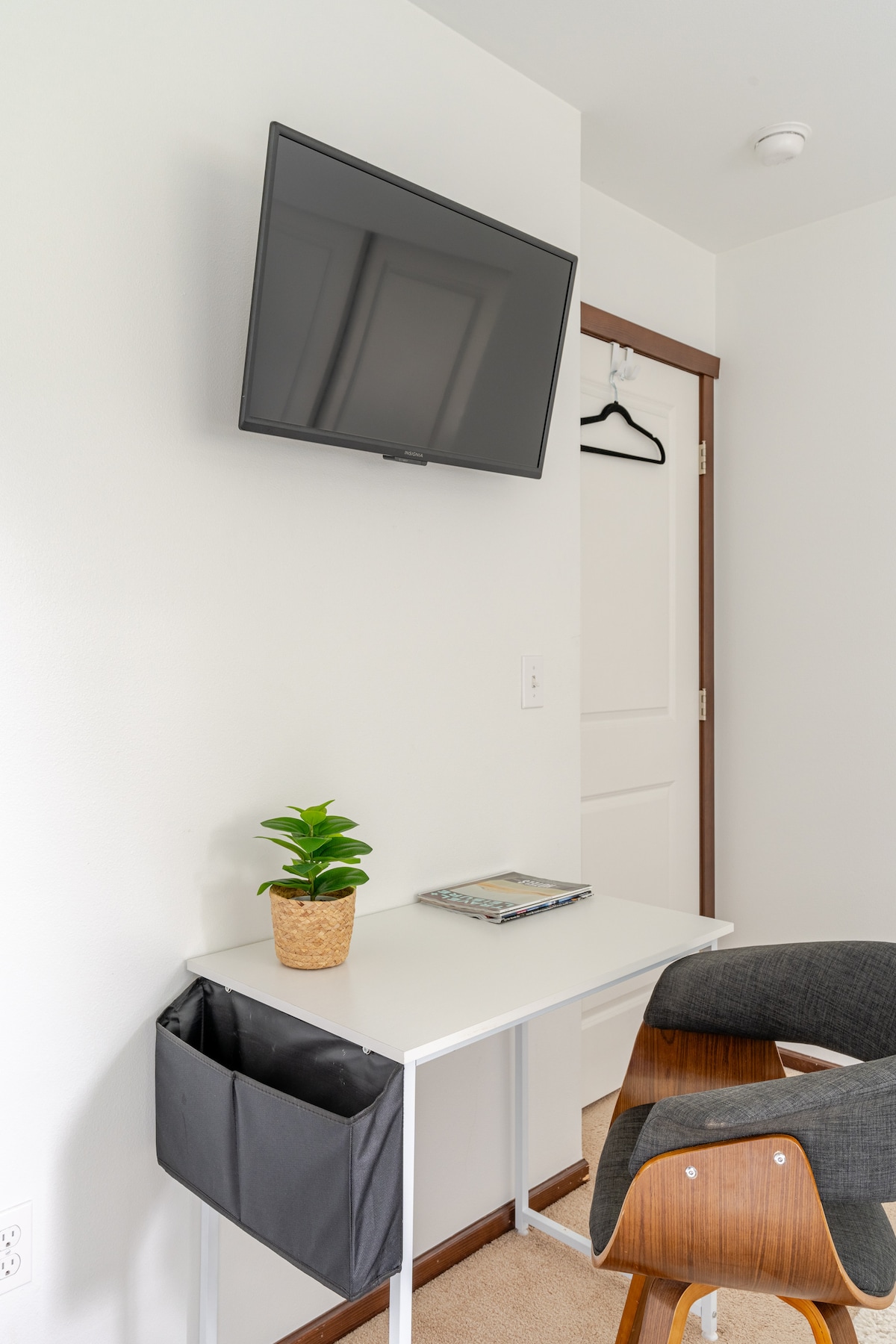 Your bedroom is fully furnished with a single-sized Trundle bed, large desk with chair, bookshelf, and a 42" TV with cable service. Linens and towels are provided. Guests are responsible for their own laundry.
