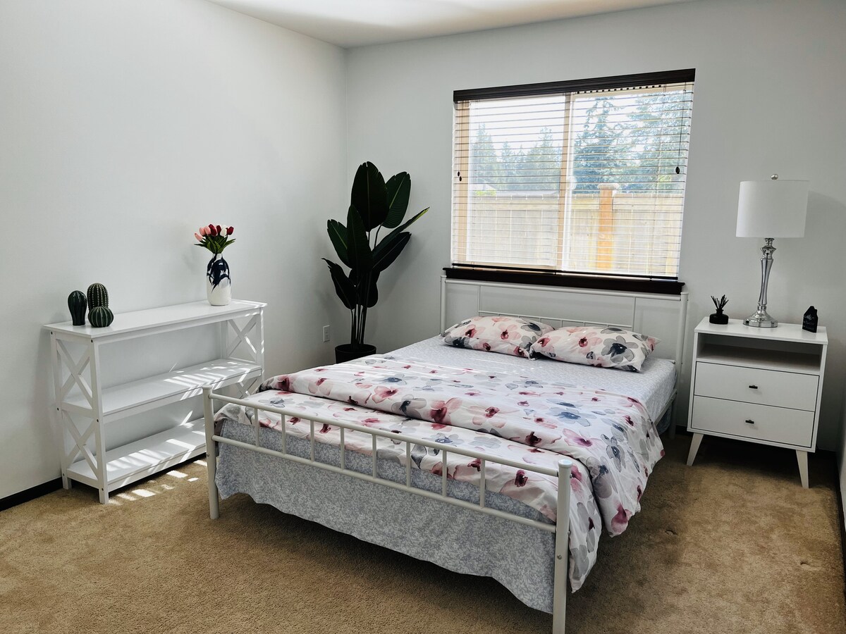 Private room on 1st floor, big window. Queen size bed with a TemperPedic mattress and adjustable head. Furniture is included: Big TV, small refrigerator, shelves, and a microwave(right outside of room). Close to Mukilteo beach and ferry, shopping centers Everett and Alderwood mall, Boeing, close to free ways (I-5 and 405), and high way 99 is a 15-20 min walk .Quite neighborhood. Air conditioned during those hot summer days.