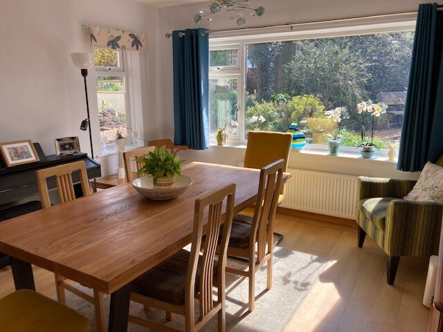 Our dining room, which benefits from the morning sun, is on the ground floor and is also available for you to use during the day, on request. It has an easy chair and other comfortable dining chairs. Should you wish to bring in ‘take away’ food, we would prefer you to eat it there, and we’ll be happy to provide crockery, cutlery and glasses. We will also clear and wash up for you once you have left the room. There is an electric piano in that room, if you would like to 'tinkle the ivories'.
