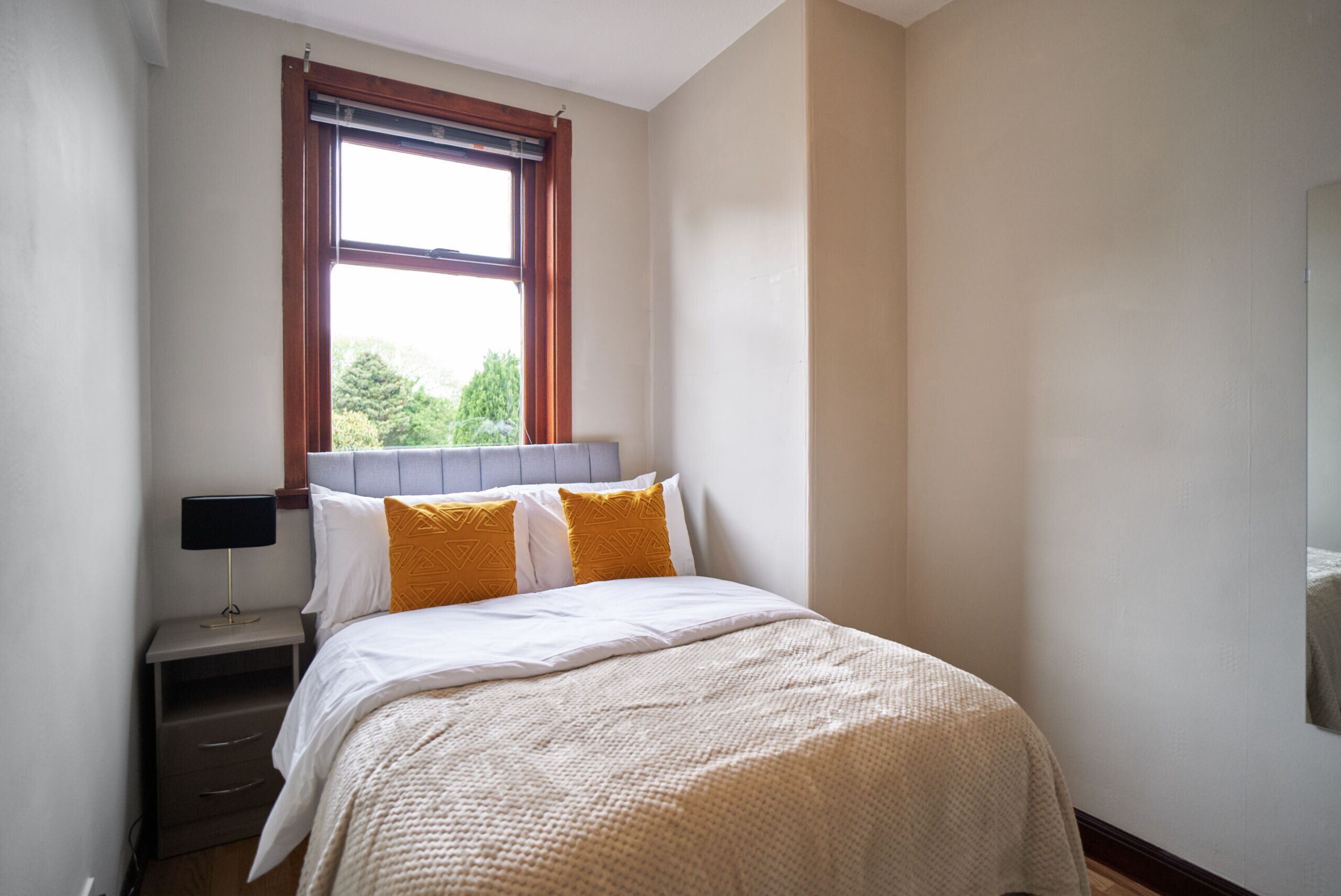Beautiful, bright, airy traditional ground floor apartment, immaculately presented. We maintain a strict no parties or events policy as we have to consider our neighbours, and kindly request that guests respect this. Access is by lock-box but if preferred we can meet in person to welcome you and show you around the apartment. The apartment has its own private entrance to the front and at the rear access to a small private patio area and a garden area suitable for use in summer. A spacious open plan living area with integrated modern kitchen appliances incorporating hob, fan assisted oven, microwave, fridge and washing machine. The property contains a cosy double bedroom with lockable door.