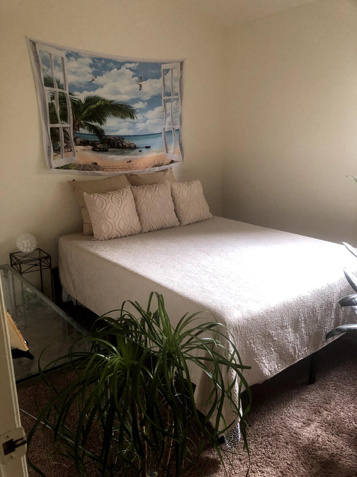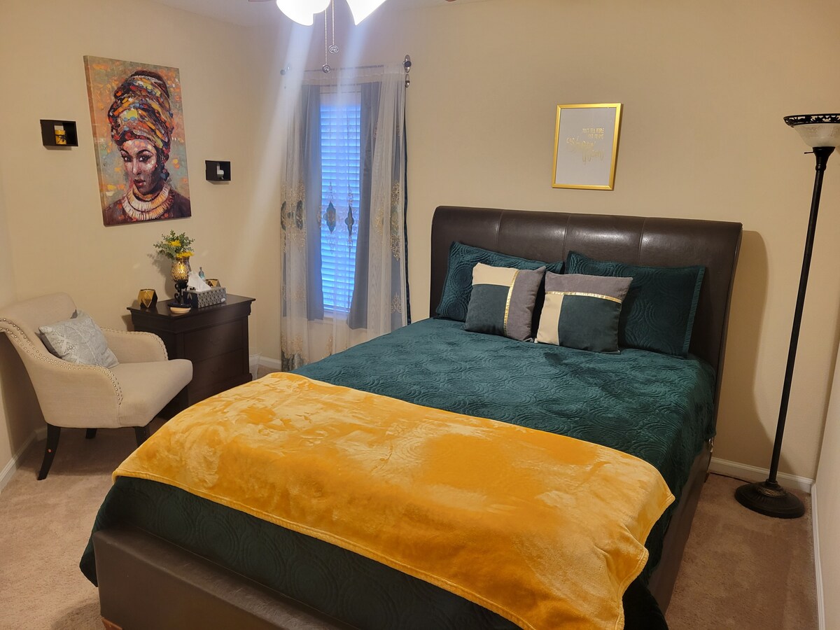 Welcome to my Home “Maze”! Nice open living area, spacious kitchen and peaceful neighborhood! Your room has a queen bed, desk, chair, tv, ceiling fan, blackout shades, a large closet and best of all a private entrance! Come and enjoy this lovely space!