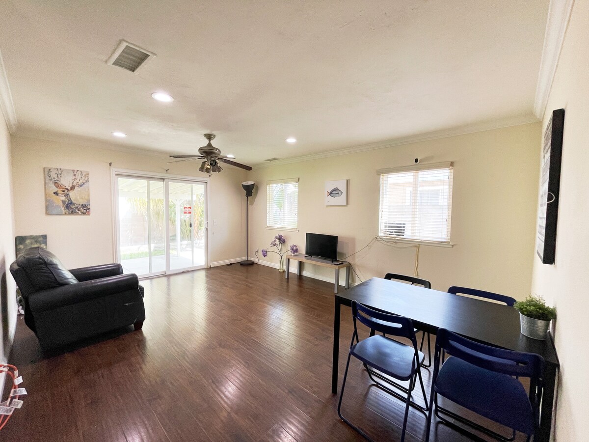 This home has been carefully planned to cater to a family vacation, featuring a large, private patio area to enjoy the California weather. Located in a safe neighborhood, ideal for families, and conveniently within walking distance of a grocery store.
