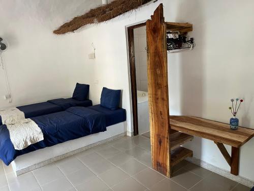 Simple but comfortable accommodation with power from solar panels and water pumped up from the well on site.
