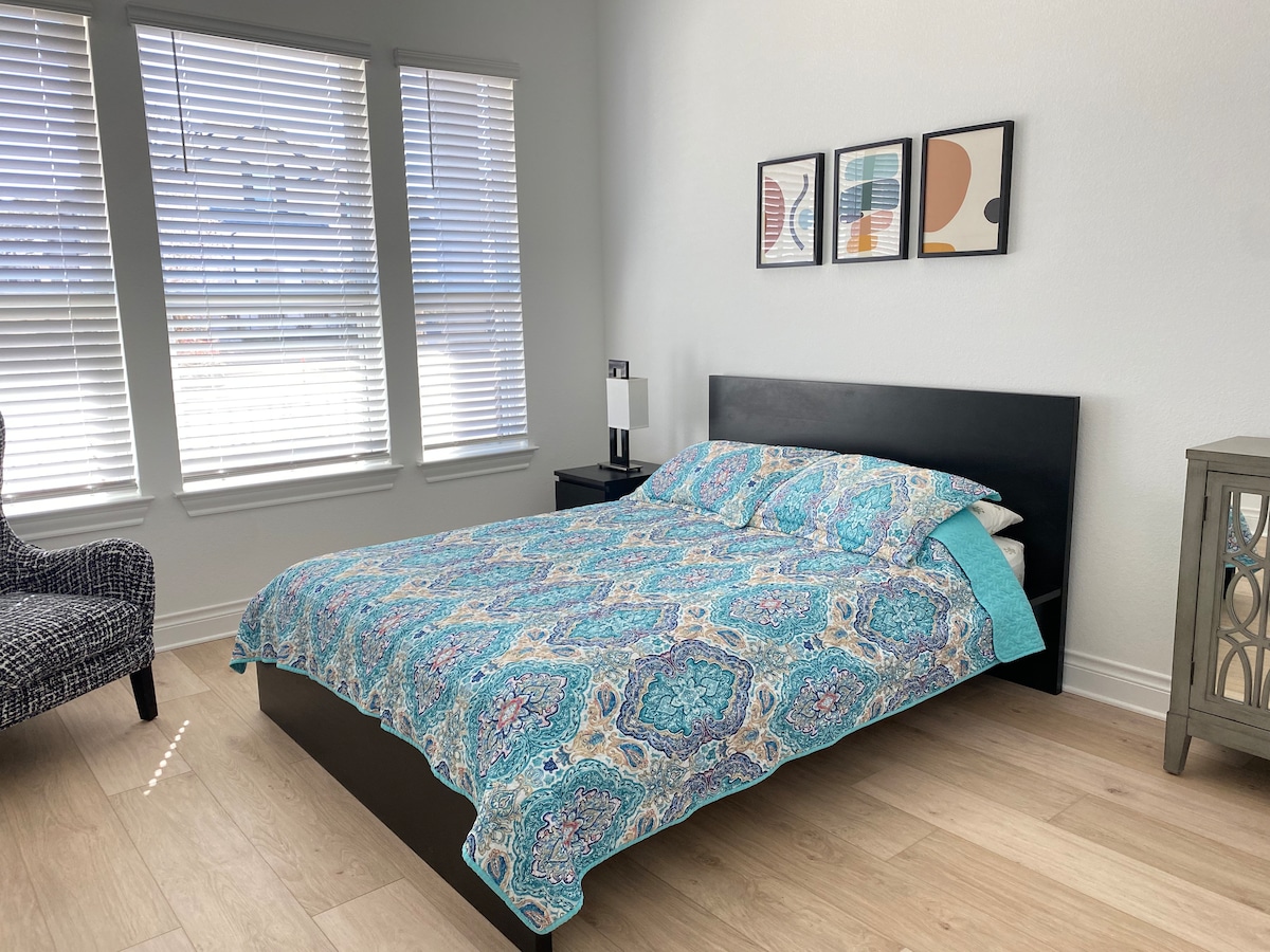 The house is situated in new building community so there will be little outside construction noise. We are offering a bedroom along with a full (private for guest) bathroom closely located to outside of the room.