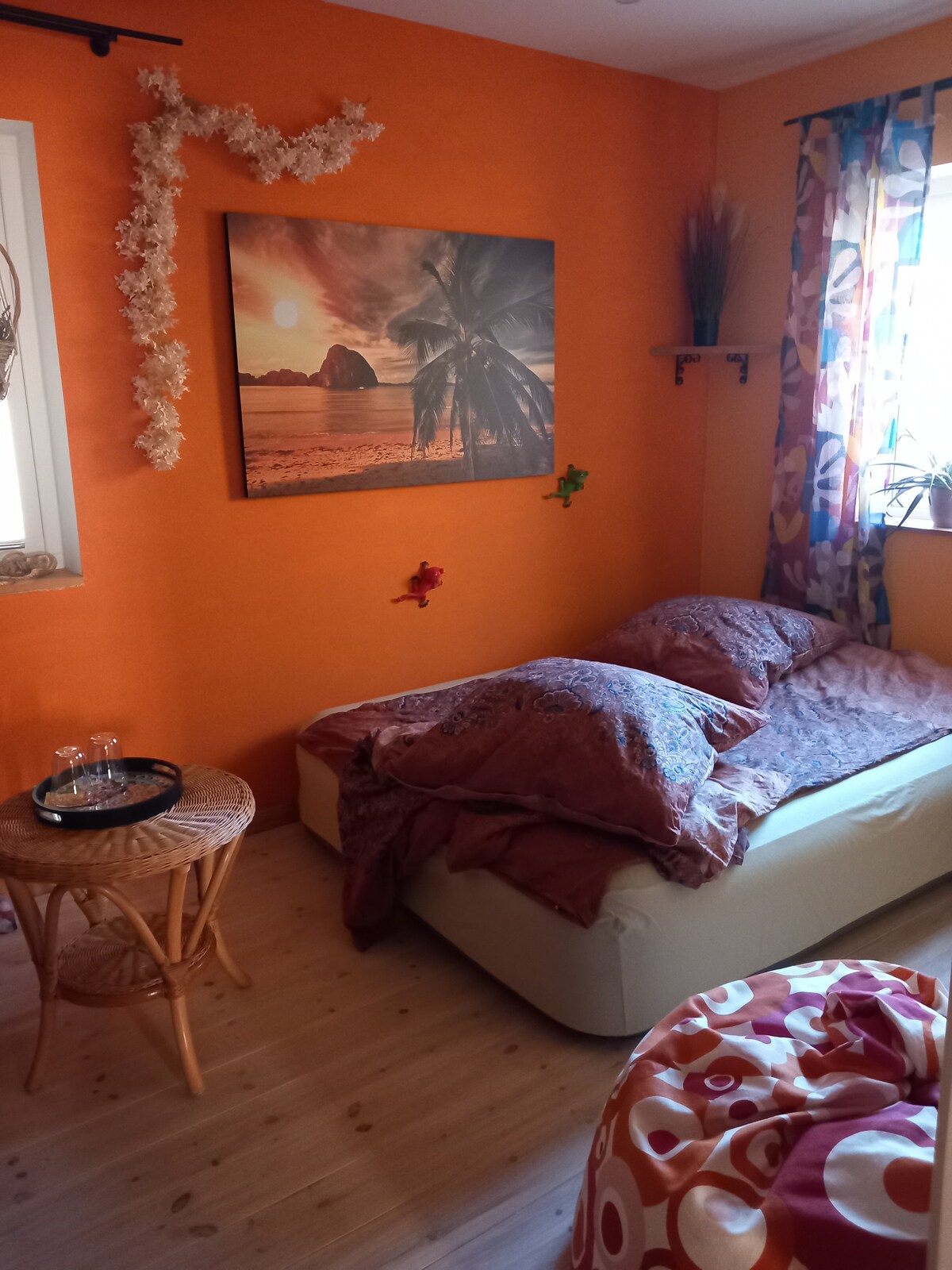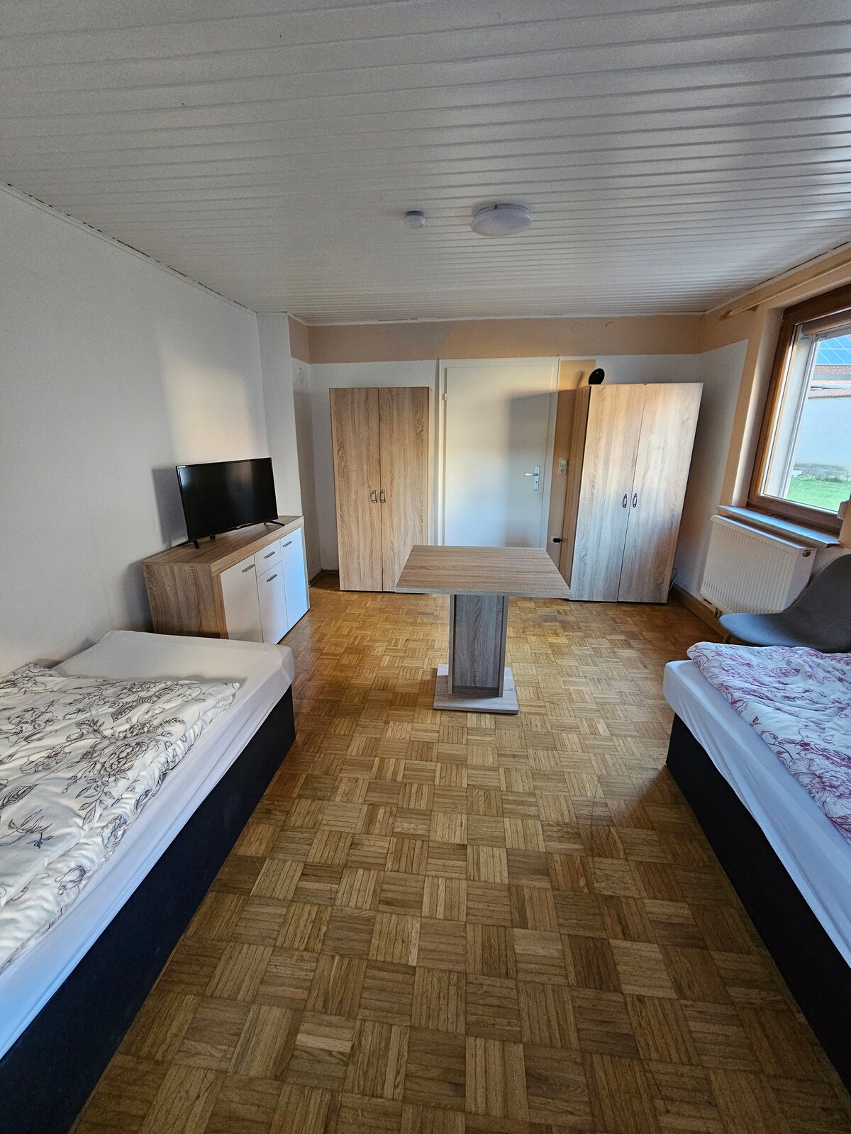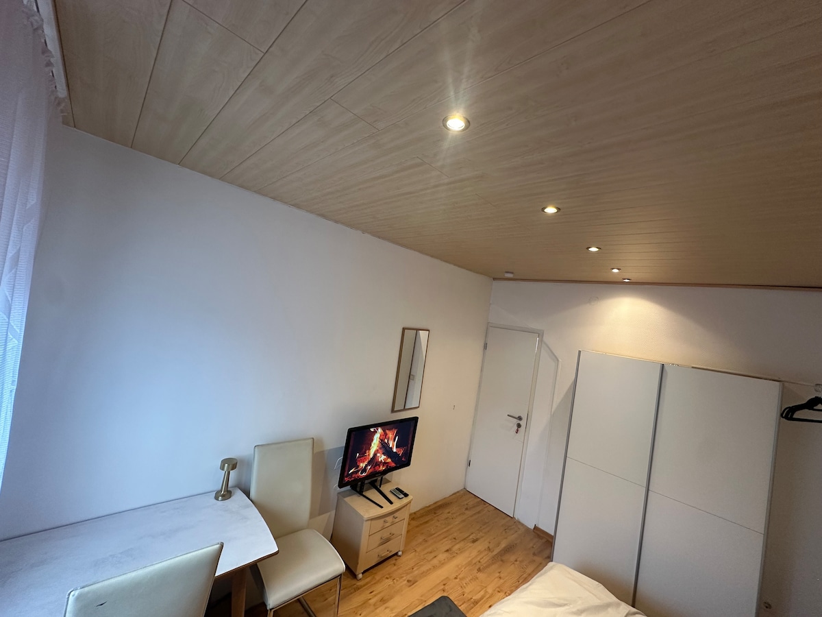 It is a room in house where 2 people can stay as long as you want .You have to share kitchen and bathroom with another The important thing that you can't drink water from waterlein its only for cooking and you can makingTeeand Coffee . And the water flows in all home in bit less than normal. In Home is prohibited pork and kinds of pork products ,Alkohol ,all kinds of Smoking . Your room in 1st floor there is 2 room you find your room on Right side room number 2.. You get free Breakfast coffee ,Tee Nutella , Honey ,Butter and Bread 🍞. Shoes are not allowed inside house please pay attention.
