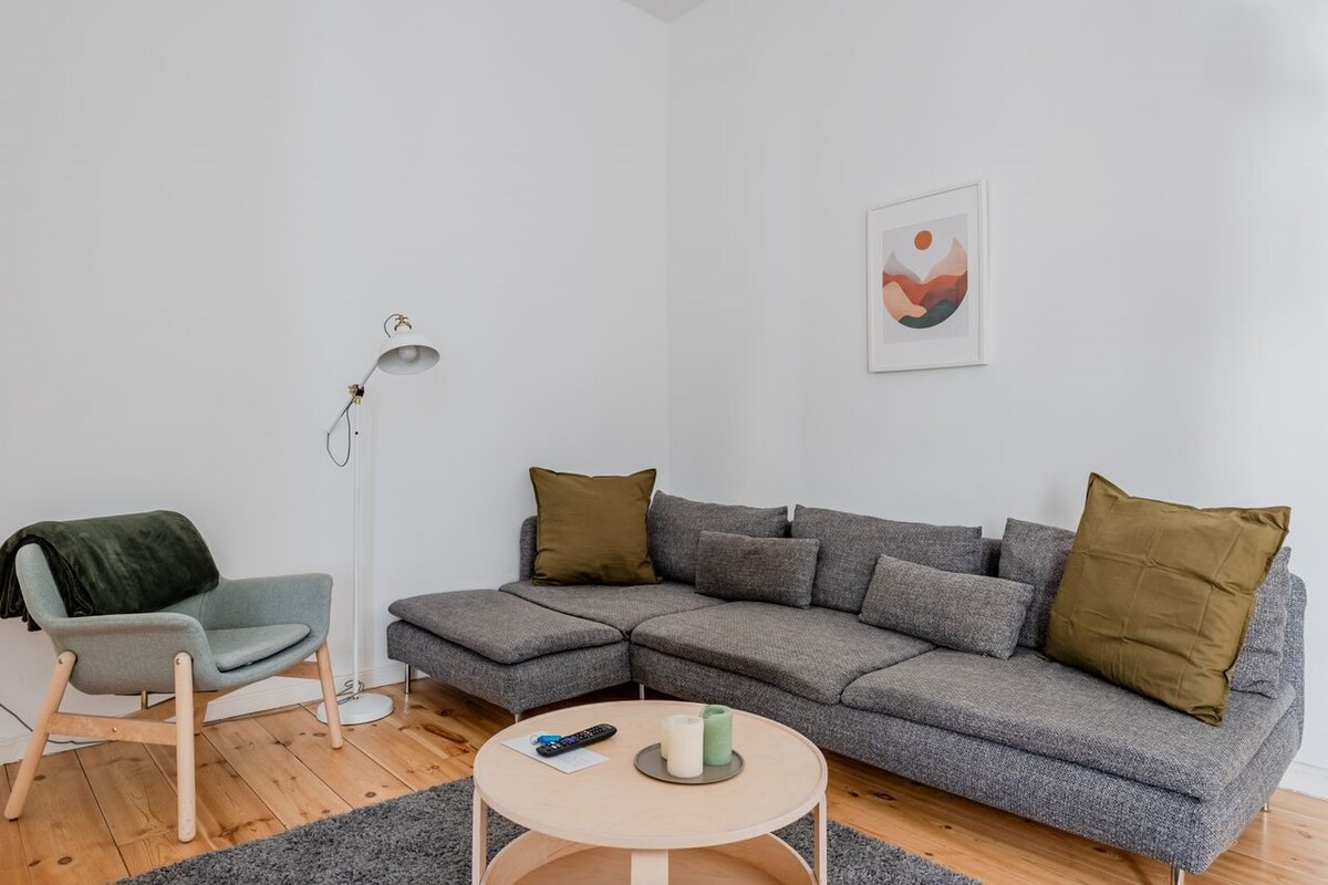 The beautiful river Spree is just around the corner and the nearby streets are dotted with numerous cafés, eateries, and bars. Berlin’s large Tiergarten park is a very short bus ride away and the well-known shopping avenue, Ku’damm, is 3 subway stops from Turmstraße.