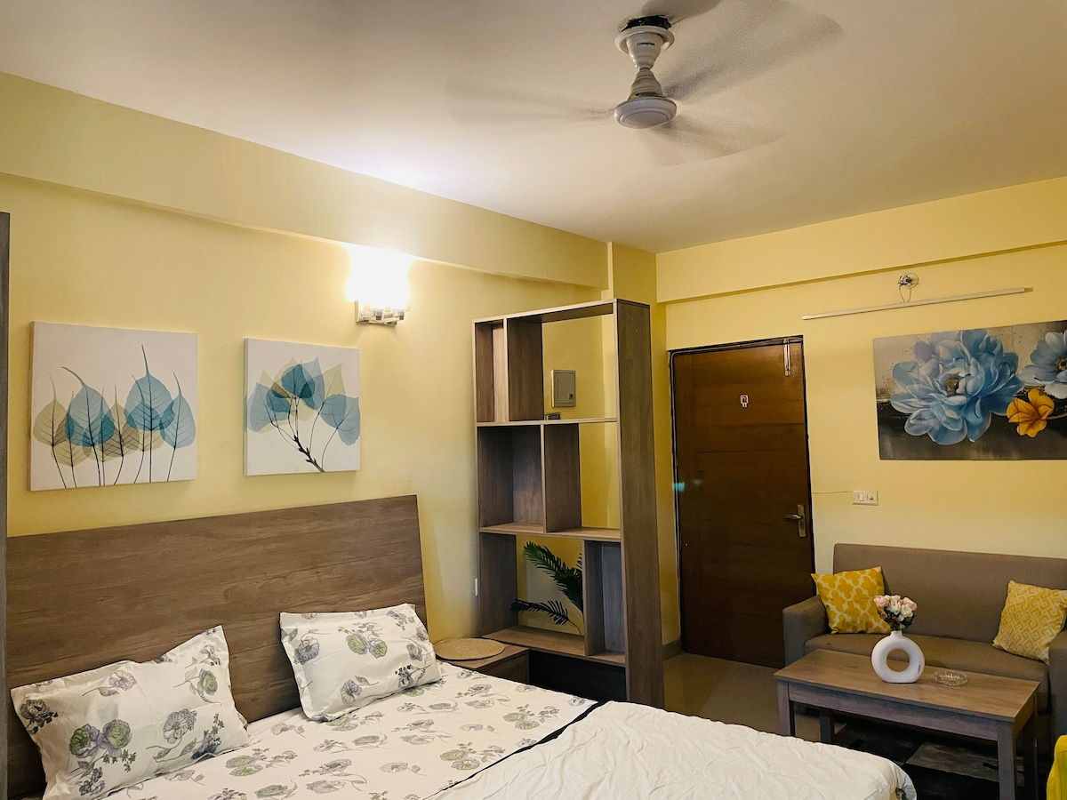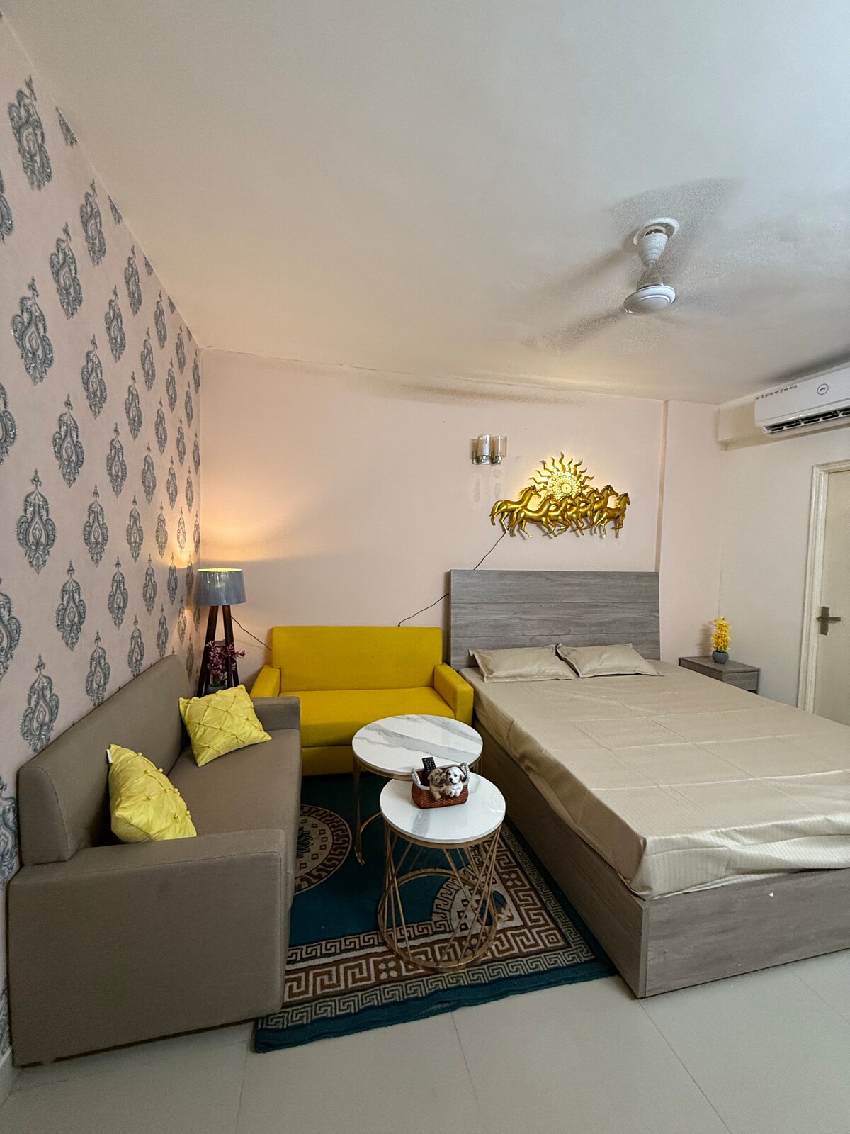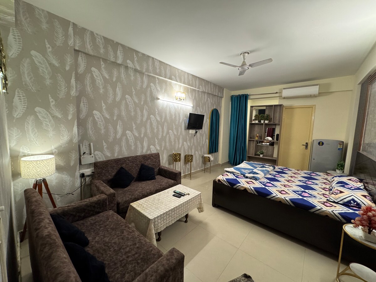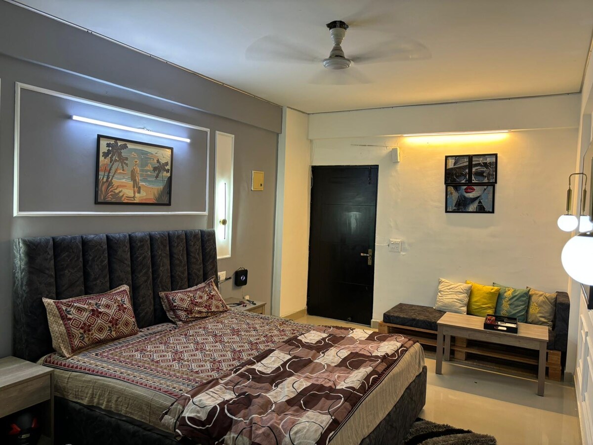 Indulge in the epitome of comfort at our stunning Airbnb studio apartment by ‘DREAMTRIP_DESIGNERS ’ in Noida .