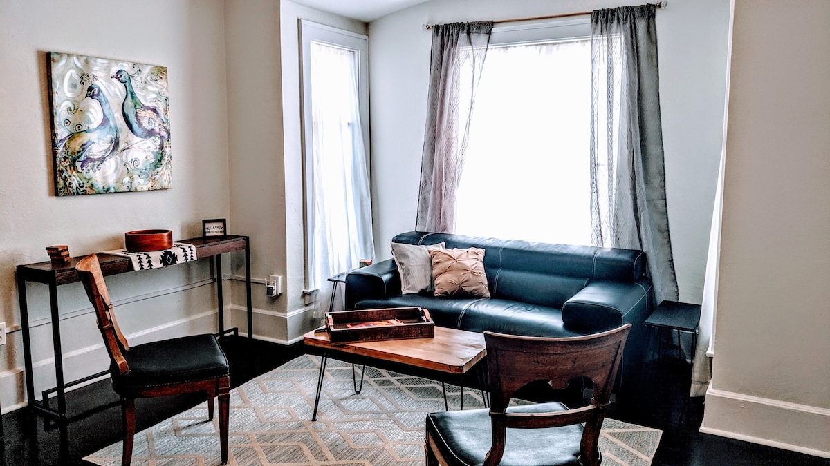 - "We can’t say enough about the location of this apartment. It’s located between two of the best streets for dining in the Heritage Hill neighborhood. We have enjoyed walking to restaurants, shops, parks and many other wonderful amenities nearby. Everything inside the apartment is brand new (furniture, kitchen items, bedding and mattresses, washer and dryer, etc.). What’s not new is the house. It’s a historical home (and feels like it), so don’t expect level floors and perfect walls. Those imperfections are part of the charm of living in this adorable neighborhood. The front porch is one of my favorite parts of the house, as well as the spacious parking area. The apartment has everything included for your stay — toiletries, cleaning supplies, laundry detergent, fully stocked kitchen, new towels — which were very helpful to us. Christian is doing an amazing job making interior improvements while we’ve stayed here. I know he plans to continue making this apartment even better with an upgraded kitchen (which would be a great improvement). He’s been so reliable and easy to communicate with during our month stay. For the price we would DEFINITELY stay here again. "