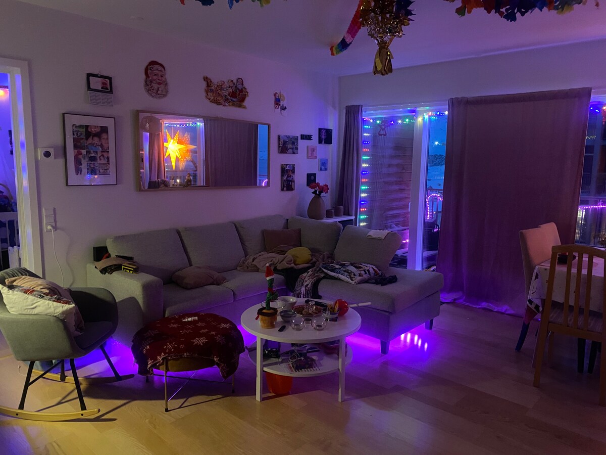 2 bedroom apartment 60m2 in quiet area. double bedroom, desk. Towels and linens that are washed as needed. Sofa bed and armchair that can be folded out into bed in the kitchen living room. Kitchen with small dishwasher and various kitchen equipment. possibility for borrowing a baby/baby chair. Bathroom in the hallway. possibility to borrow washing machine as well as clothesline inside and outside. Close to city bus. Close to green area. Sharing entrance with small hobby shop. Space for parking. Small breeze with 2 bikes.