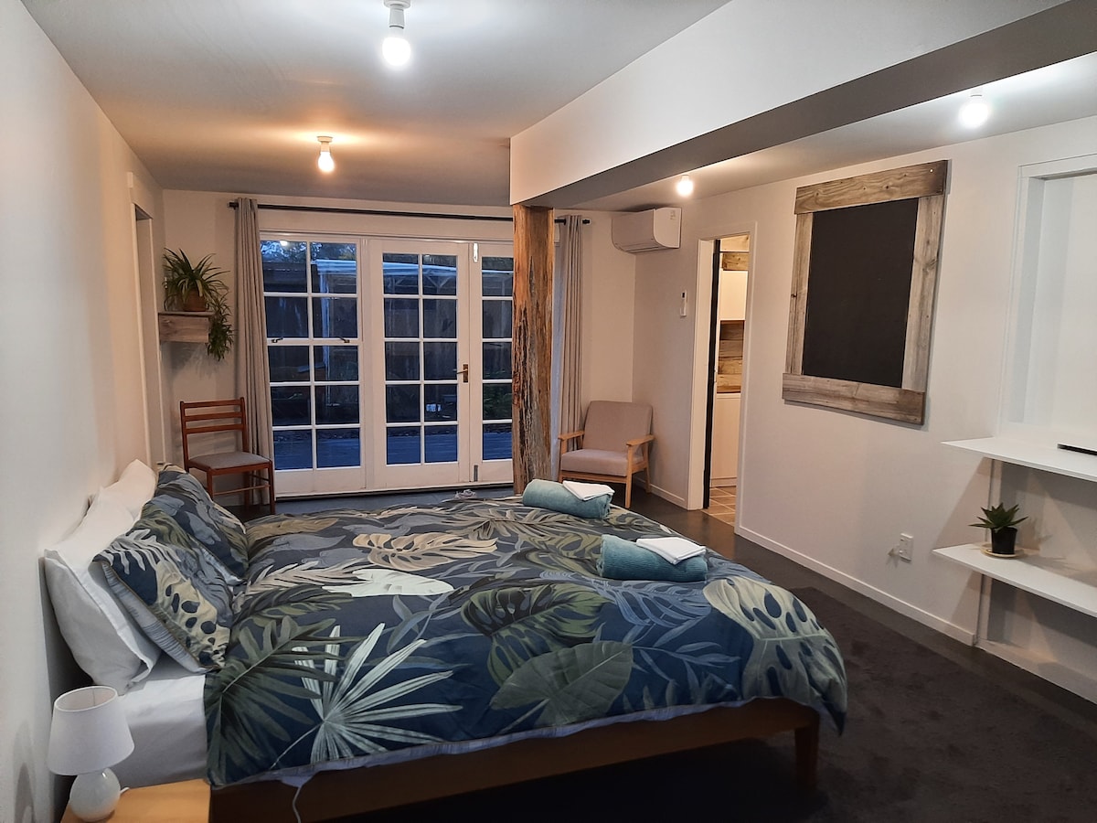 This stand alone 36 square metre studio style unit has a queen bed, dressed with quality cotton sheets, duvet, an electric blanket and extra blankets.