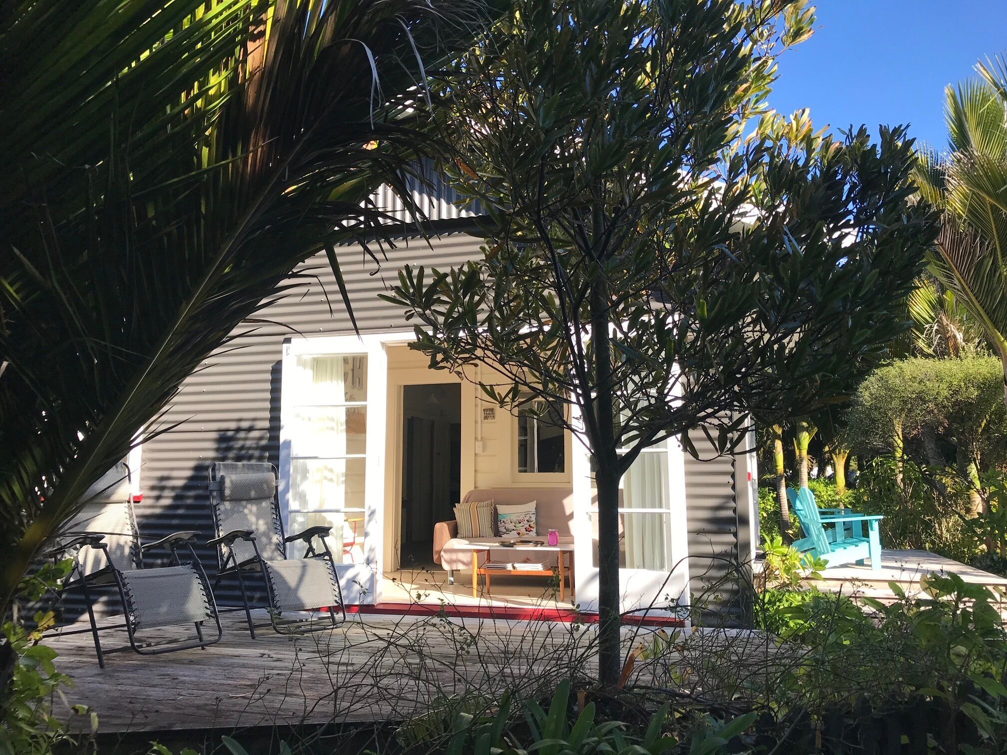 Park your vehicle in our off street carpark, walk up our shared driveway past our garage, and let yourself in to the sleepout.