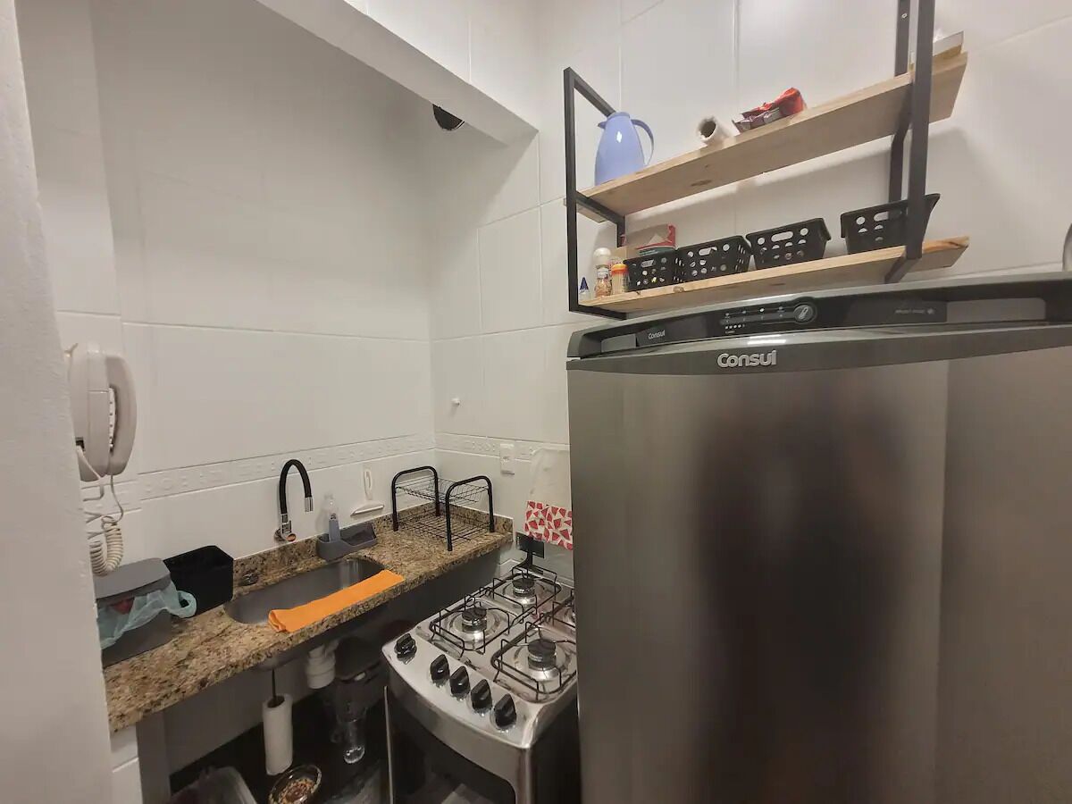 - "I needed a place to stay during my trip to the US consulate in Rio de Janeiro. I was originally going to stay in Copacabana but the hotels were expensive, outdated, and had no kitchen to cook. I didn’t know anything about Rio, so my assumption was I had to stay in the beach towns for higher quality hotels and safer environments. But when reviewing this studio apartment, it had more modern rooms, a kitchen, and a more affordable price, so I took a chance and hoped I made the right choice. I have to say that I was very pleased with my accommodations. The room was very clean and furnished. It had a nice kitchen to prepare meals. My only recommendation is for a few more kitchen amenities. My wife is Brazilian and wanted to cook beans but they didn’t have a pressure cooker. The shower did not have a sliding glass door so when you shower the bathroom floor and bathroom door gets wet. Besides a few minor touches, everything else was very satisfactory. They have a community area with several amenities. The full service laundry machines were a big plus. Anything that we requested or needed was promptly addressed and attended to from extra toiletries to local market recommendations. There is limited parking in the street during the day but it frees up after work around 5/6pm. I used the private garage which was on the same side of the street and only a short walk away. Overall I was very pleased about the value of my stay and recommend to others. "