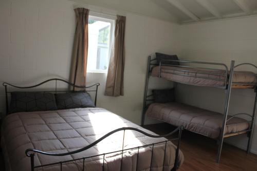 Private crib ideal for families or couples. Two bedrooms – one room with two sets of bunks (top bunks suitable for children or small adults only) and one room with a queen bed. Also a port-a-cot for a baby.