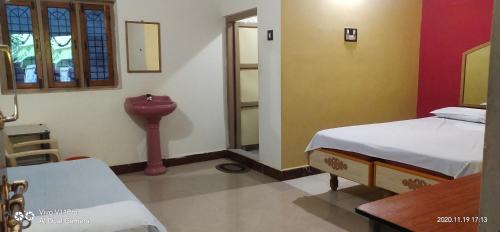 Thilak Home Stay is offering accommodations in Hampi. This property offers access to a terrace, free private parking, and free Wifi. The accommodation provides a 24-hour front desk, full-day security, and currency exchange for guests. At the homestay, every unit includes a desk, a TV, a private bathroom, bed linen, and towels. At the homestay, all units are soundproof. Continental and full English/Irish breakfast options with local specialities, pancakes, and fruit are available daily. At the property, there is an family-friendly restaurant serving Chinese cuisine as well as vegetarian options. The area is popular for cycling, and bike rental and car rental are available at the homestay.