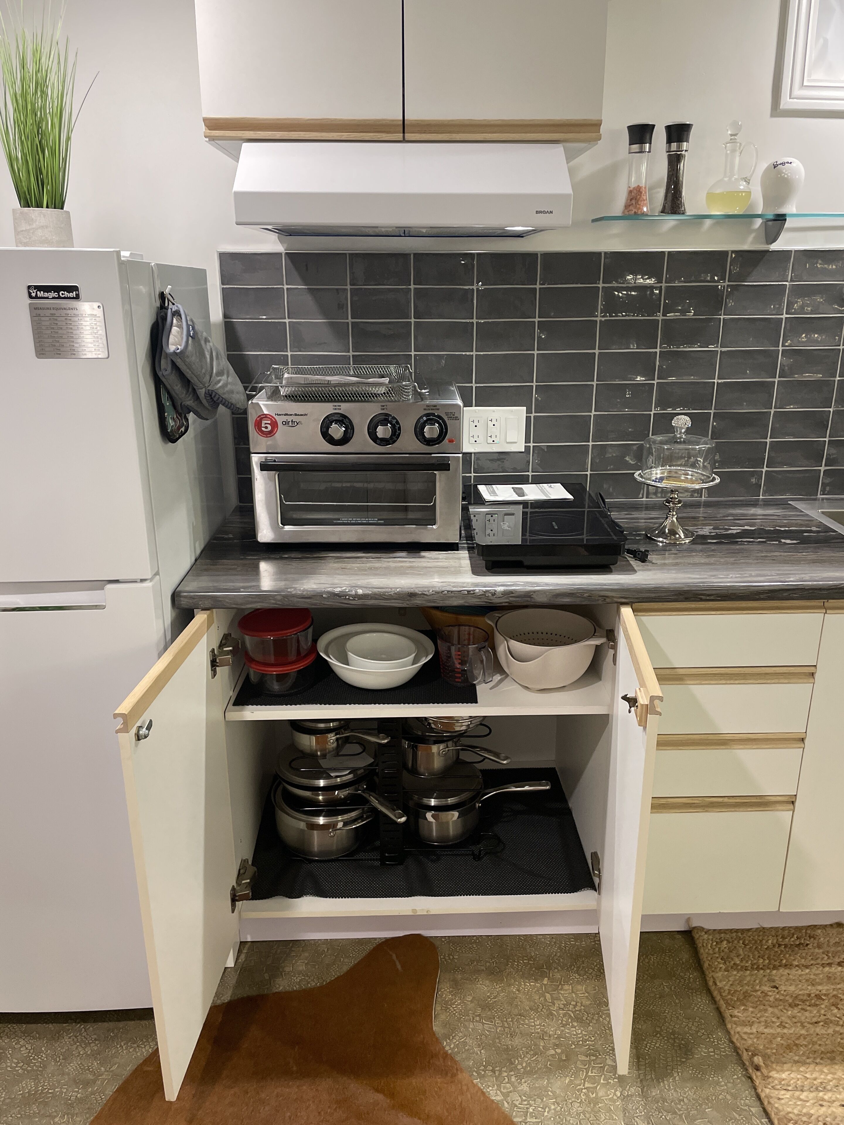 KitchenOur fully equipped kitchen is well suited for cooking, baking or air-frying crispy wings. We also have a full coffee bar featuring a 12 Cup coffee maker, single use keurig machine with an assortment of single use coffee pods. We have Tim Hortons Coffee, regular and decaf, tea, sugar, sweetener and coffee mate. We also have a full spice cabinet. You are welcome to use all cooking supplies and anything else you find in the pantry or main fridge.