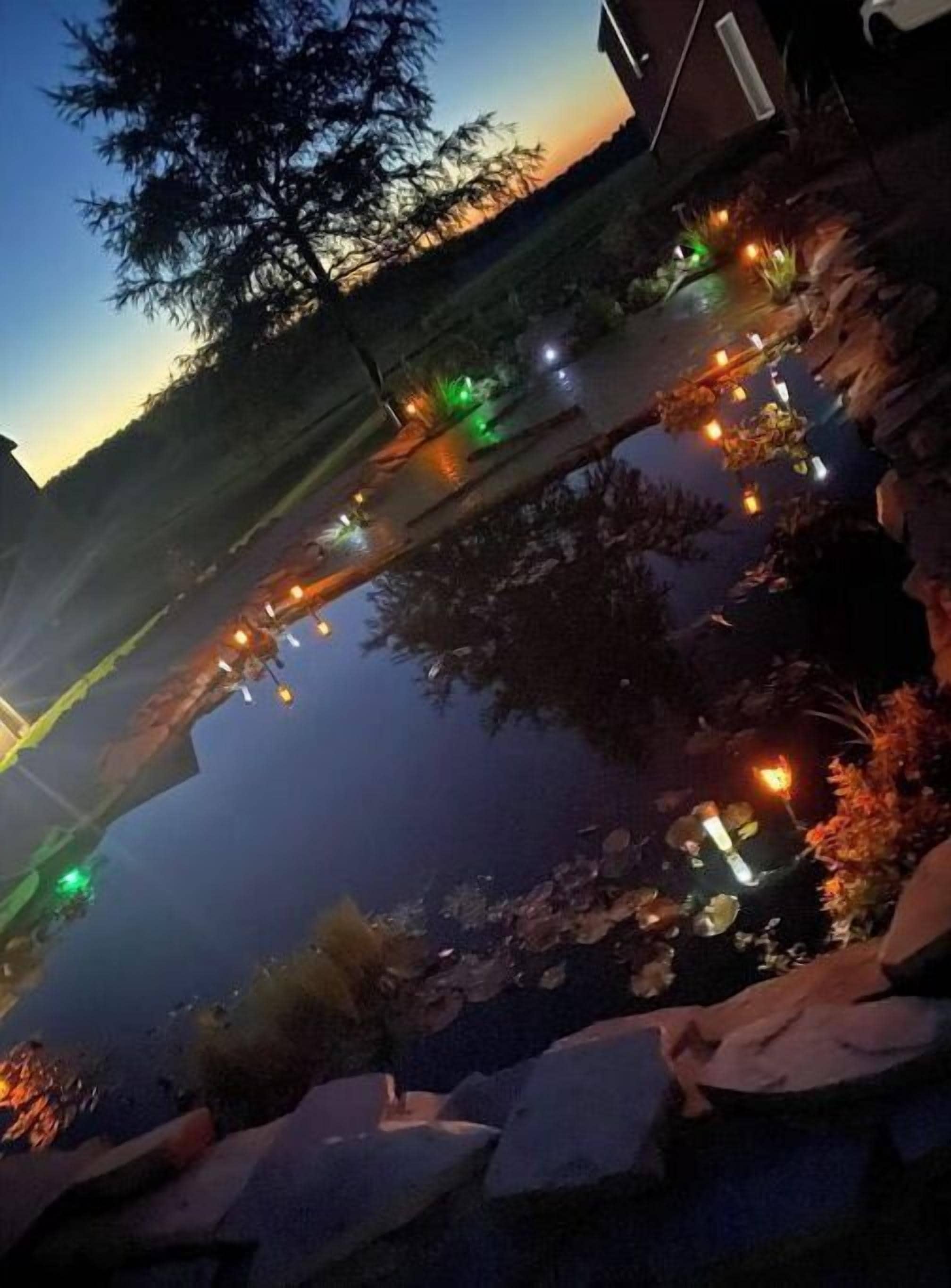 Listen to the waterfall and water fountains, feed the koi. Sit under the shade of the pergola and enjoy the nature of the pond, or take in a game of horse shoes.