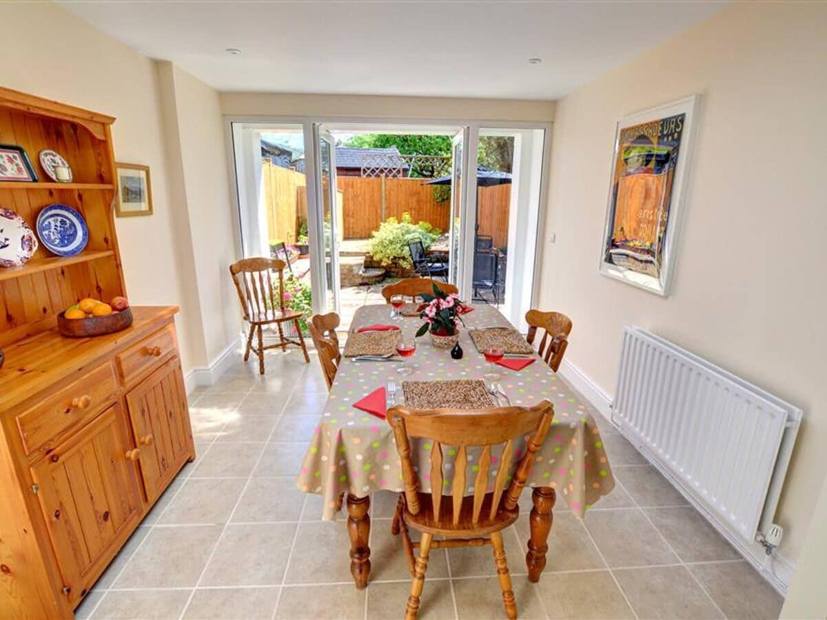 A sheltered garden to the rear provides a lovely place to enjoy a summer meal.