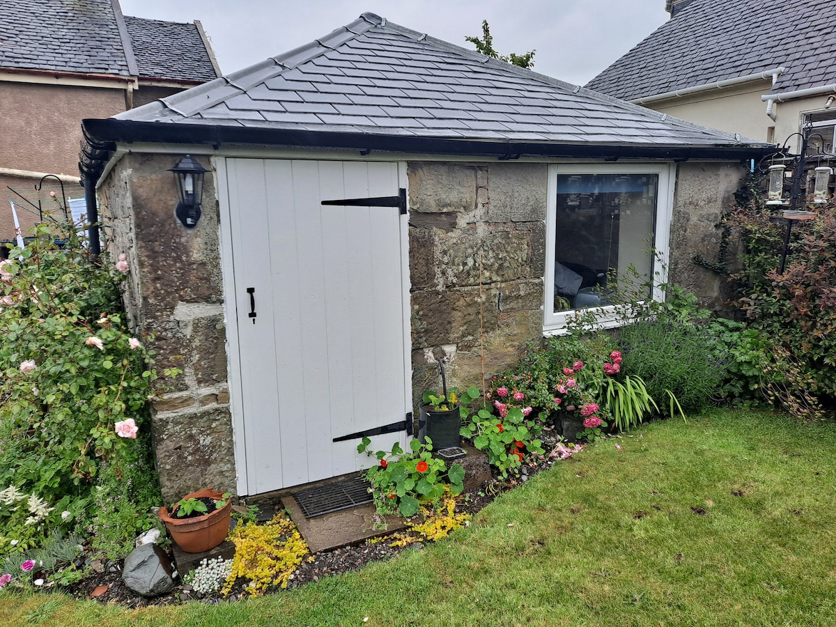 A convenient stopping point for trips further north. Self-contained sandstone studio in the town centre with shower room, sofa bed (makes small double bed), and kitchenette area with fridge, microwave/grill and kettle. Electric heating, garden with seating. 50 metres from the promenade, pub/hotel. Bus stop opposite driveway and walking distance from shops and stations (trains to Glasgow or the sleeper from London to the north).