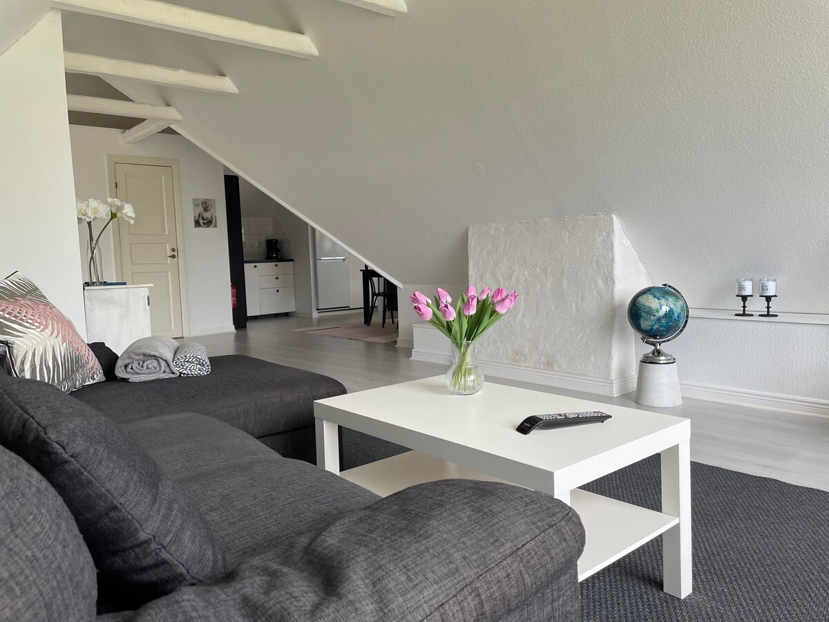 Enjoy the beautiful apartment and the roof terrace overlooking the village and the sea. Båstad is a lovely place with a lot to do and discover