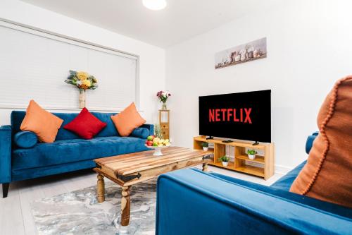 Modern 2BR 2BA with Free Parking - Sleeps 6 offers accommodations in Hemel Hempstead, 13 miles from Harrow-on-the-Hill Tube Station and 14 miles from South Harrow Tube Station. The property is around 5.7 miles from Watford Junction, 12 miles from Stanmore Tube Station, and 12 miles from Yeah. The apartment also offers free Wifi and free private parking. The apartment features 2 bedrooms, a fully equipped kitchen with a dishwasher and an oven, a washing machine, and 2 bathrooms with a hair dryer. Towels and bed linen are offered in the apartment. For added privacy, the accommodation features a private entrance. Hatfield House is 14 miles from Modern 2BR 2BA with Free Parking - Sleeps 6, while Kenton Tube Station is 16 miles from the property. London Luton Airport is 12 miles away.