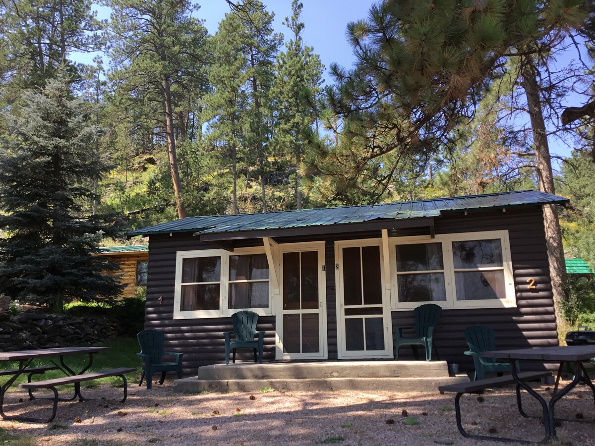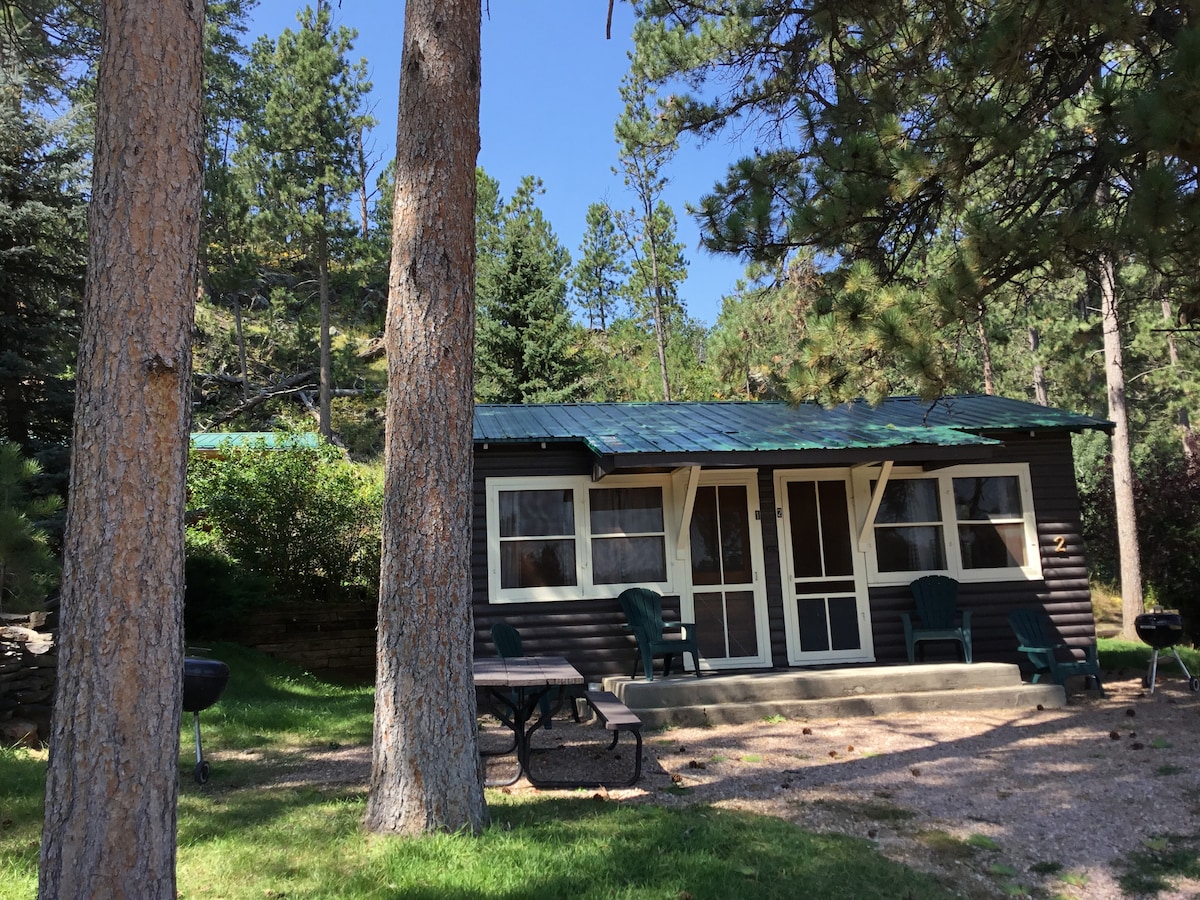 Cabin #2 is the north half of the Cabin #1 & 2 duplex. This is a comfortable little old fashioned cabin with that quintessential Black Hills Knotty pine interior Each half of the duplex is approximately 350 sq. ft. and has a separate entrance, while they share the front porch.
