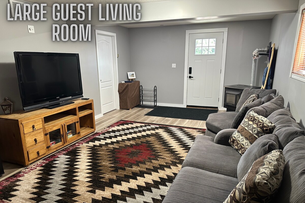 The space is a walkout basement suite, my family and I live on the main floor. The guest suite has its own entrance and parking.