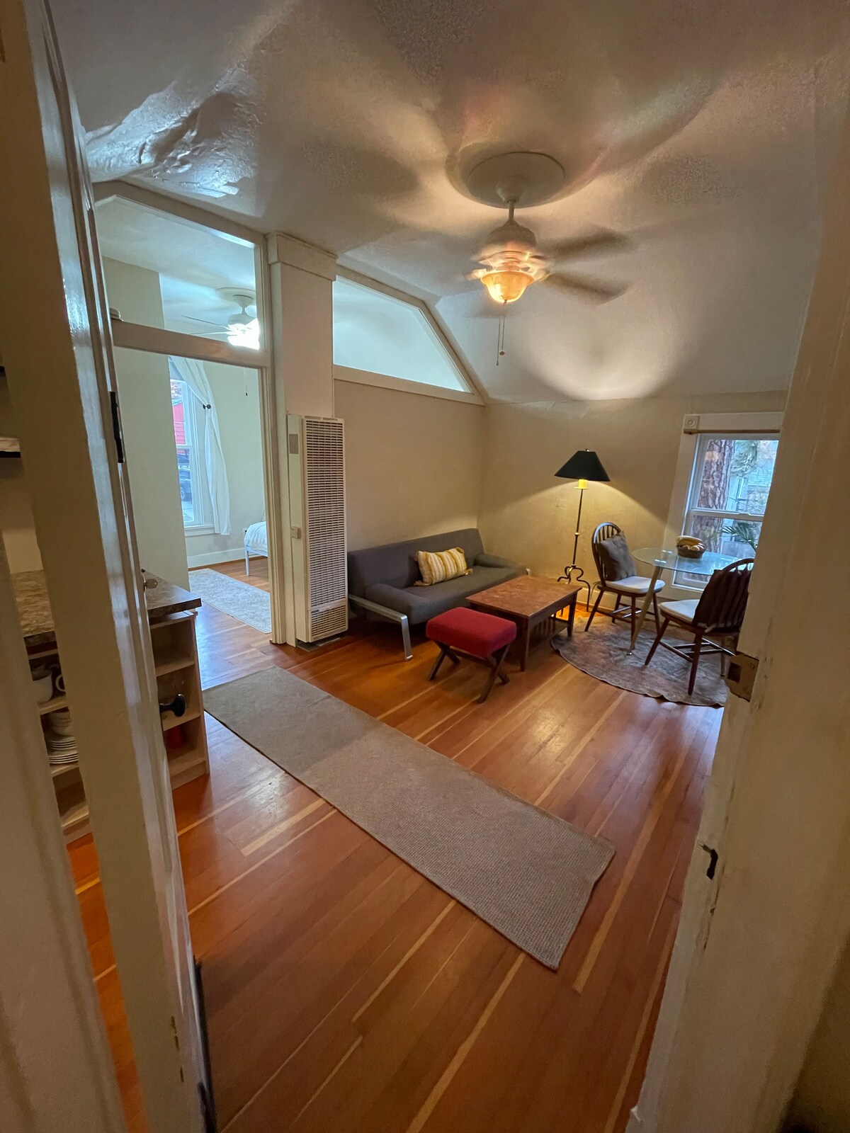 Not short term. A special place is close to town, making it easy to plan your visit for a 30 day or longer stay. This suite with wooden floors has a kitchenette/ living area in one room and a private bedroom with bathroom. The view is of the neighborhood. The suite is perfect for one guest- the rate posted is for one guest. We allow an additional guest for additional charge. There is a TV for apps only, no local channels. Bring your own Netflixs, Hulu, etc codes. No pets are allowed.