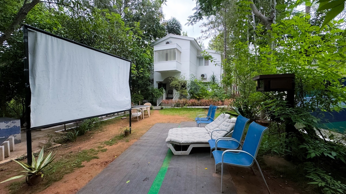 Escape to Meadows 4BHK Villa, Bangalore, a luxurious retreat designed for comfort and elegance. Perfect for families and groups, this spacious villa features a private swimming pool, a lush green lawn, and a private cinema for immersive entertainment. Surrounded by nature, it offers a peaceful ambiance while being close to the city's conveniences. Whether you're relaxing by the pool or enjoying movie nights, this villa ensures an unforgettable stay.