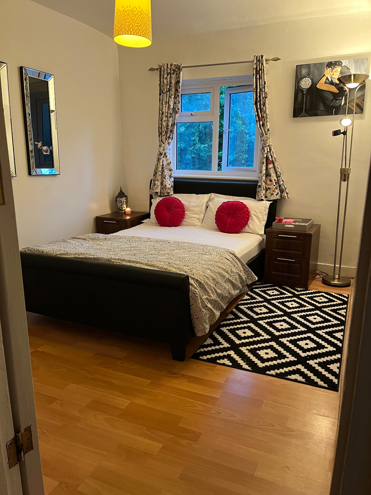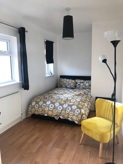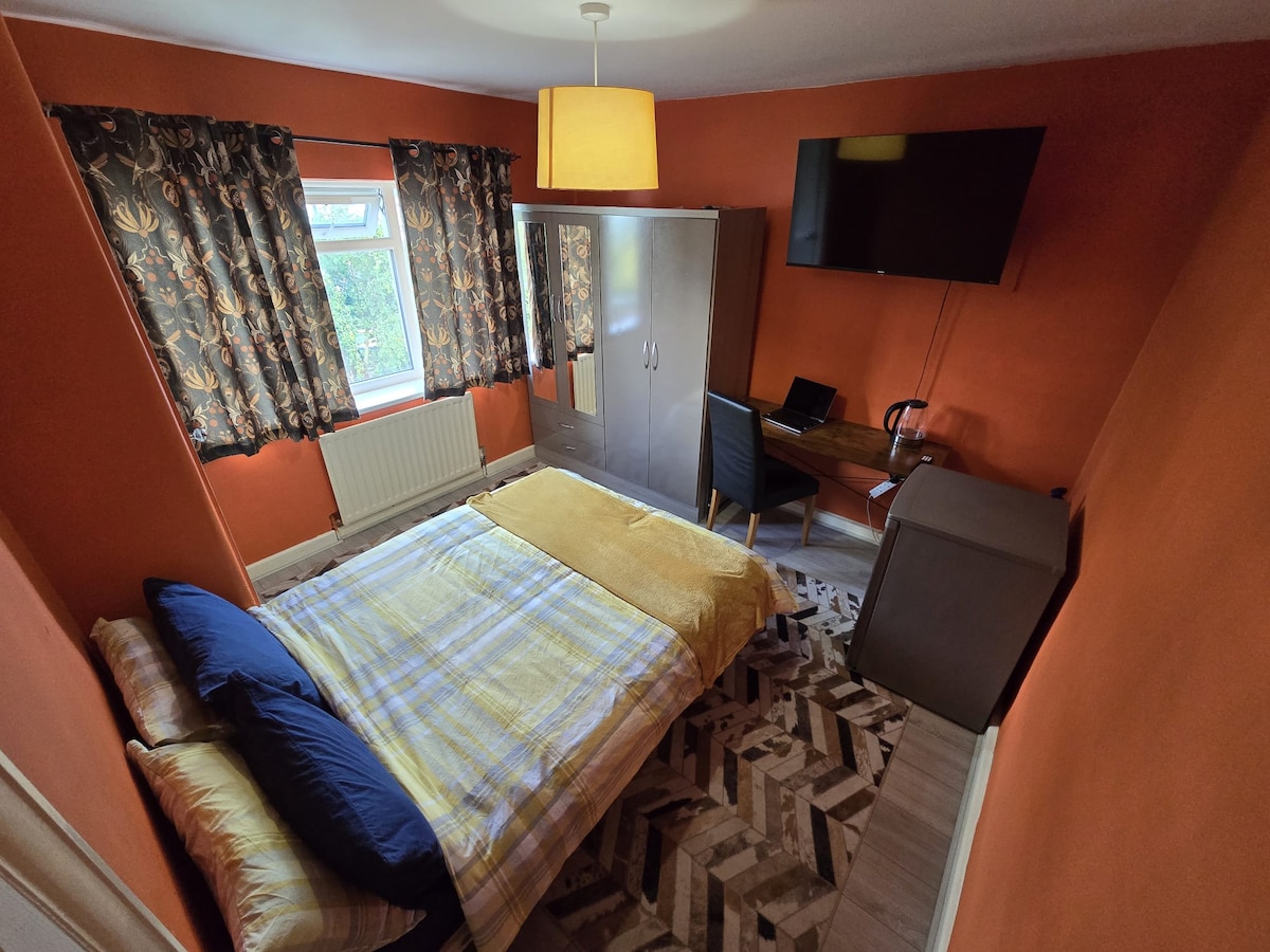 A comfortable small double room with a bed and memory foam Mattress. You will get a perfect night sleep in this 4 bed house with a shared bathroom.