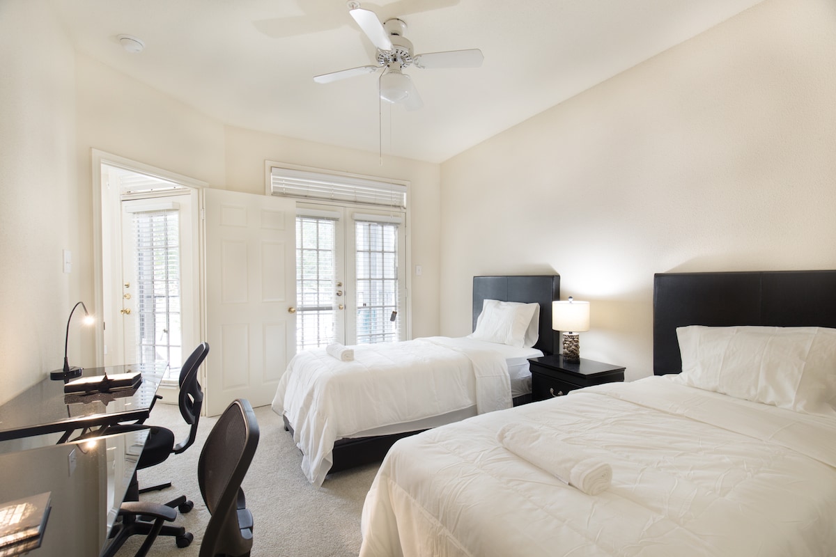 All shared apartments are 2b/2b and each room has two twin beds two study desks and a bathroom.