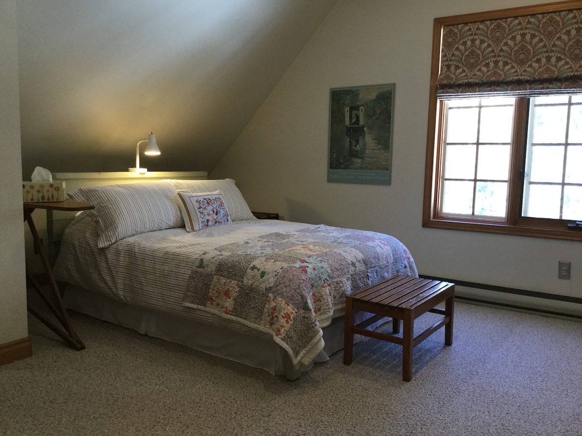 The guest room is private from the rest of the house with its own separate entrance. It is a bright double bedded room with a sitting area, lots of closet space, private bathroom and outside deck for relaxing.