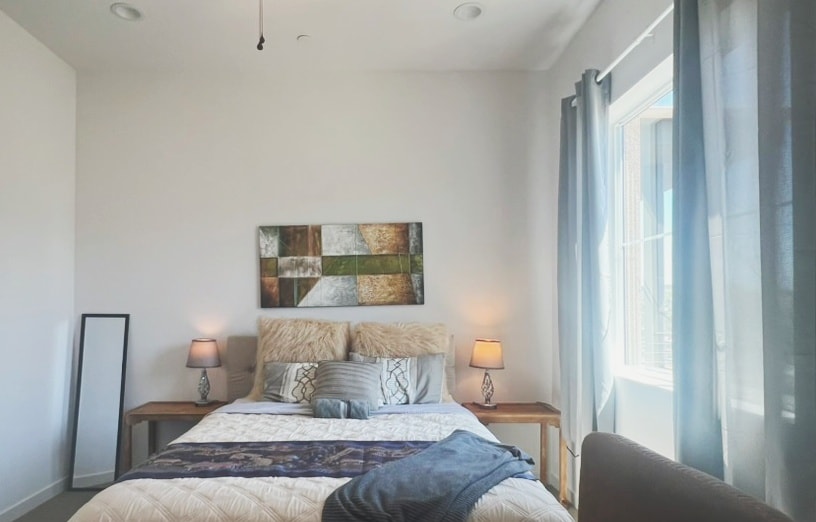 This centrally located room offers a peaceful environment, a simpler way of life. Situated in the Great Park area, it provides easy access to top-notch facilities, including the clubhouse, park, and sports venues. The shopping center is a short 5-8 minute drive away. Walk to sports facilities and the swimming clubhouse. The room features a comfortable queen bed, bedside table, desk, and wardrobe. Located on the 2nd floor with an shared full bathroom with two sinks for two guests only.