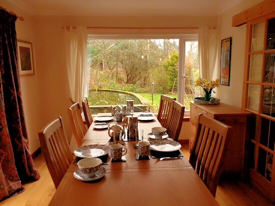 I provide a continental breakfast, served in a lovely bright dining room with views across the bay. All the jams and bread are homemade. There is a wide choice of dried fruits, nuts, seeds, milks and Fair Trade teas. Fresh fruit and berries are also available. I can offer a variety of 'free from' products - please ask us about any dietary requirements.