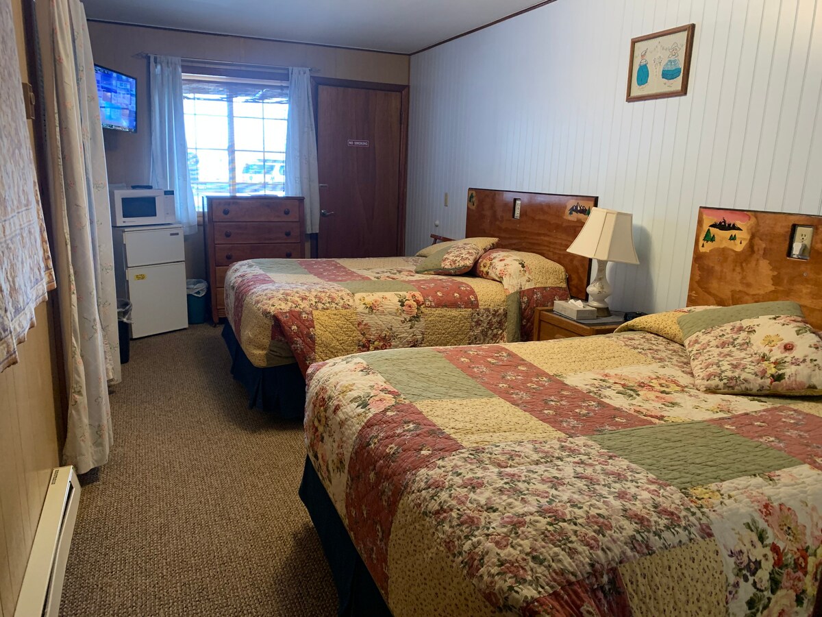 We are the Pines Motel*Guest Haus, and our property sits on over an acre of tree-covered lawn. For your summer fun and relaxation, we have a fireplace, gas grills, picnic area, lawn chairs, and plenty of room for children to play. Besides our five upstairs AirBnB rooms, we have two other AirBnB rooms downstairs with private bathrooms, and dedicated parking in front of these two rooms.