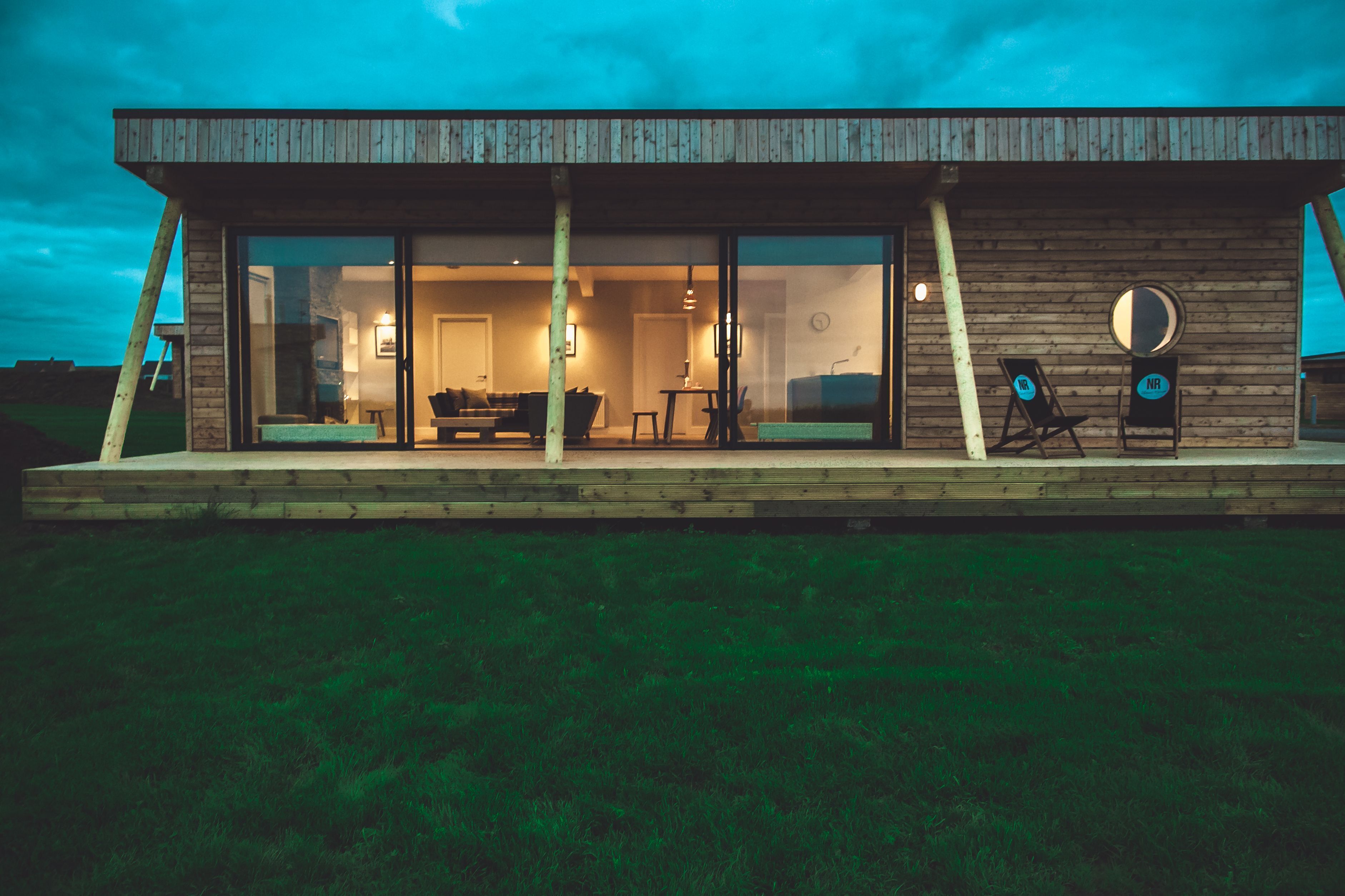 Every lodge makes the most of the breathtaking view out to the Orkneys with extensive glass wall frontage, designed to bring the natural light and seascape directly into your home. We have made a commitment to support jobs and manufacturing in Britain, therefore all furniture and fittings are sourced as locally as possible ensuing sustainability as well as enviable levels of comfort and luxury.