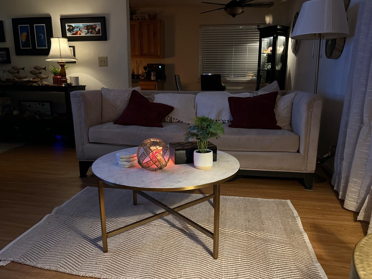 Keep it simple at this peaceful and centrally-located in the Valley. We have one dog a sheltie who is a pup jumps a lot still learning but very nice! My grandson lives with me he’s 3 and always has something to say.